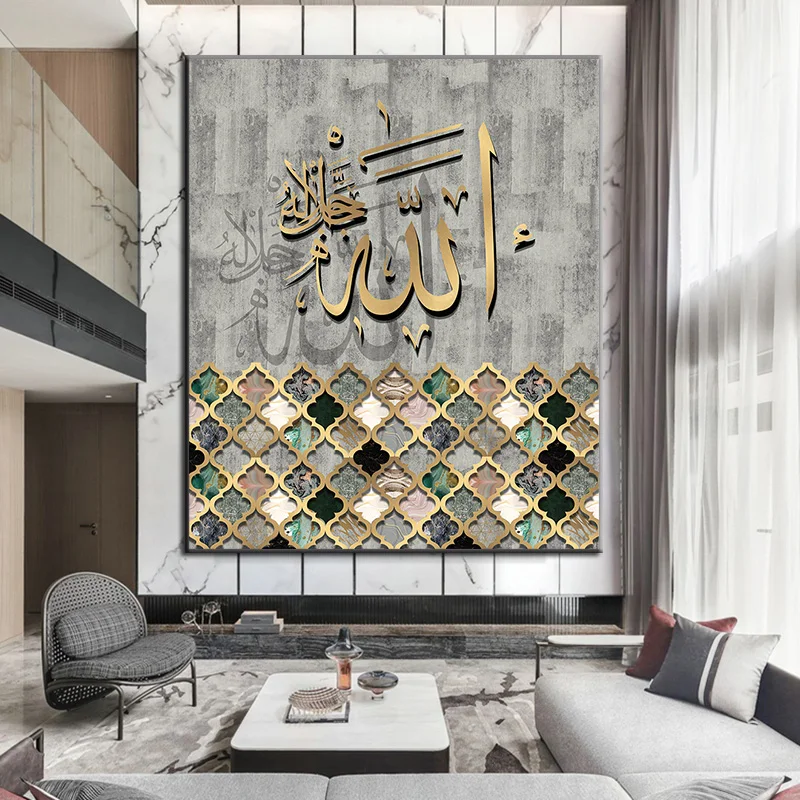 Серая мусульманская Настенная картина Современная мусульманская каллиграфия Коран религиозная картина на холсте постер и принты для мечети домашний декор