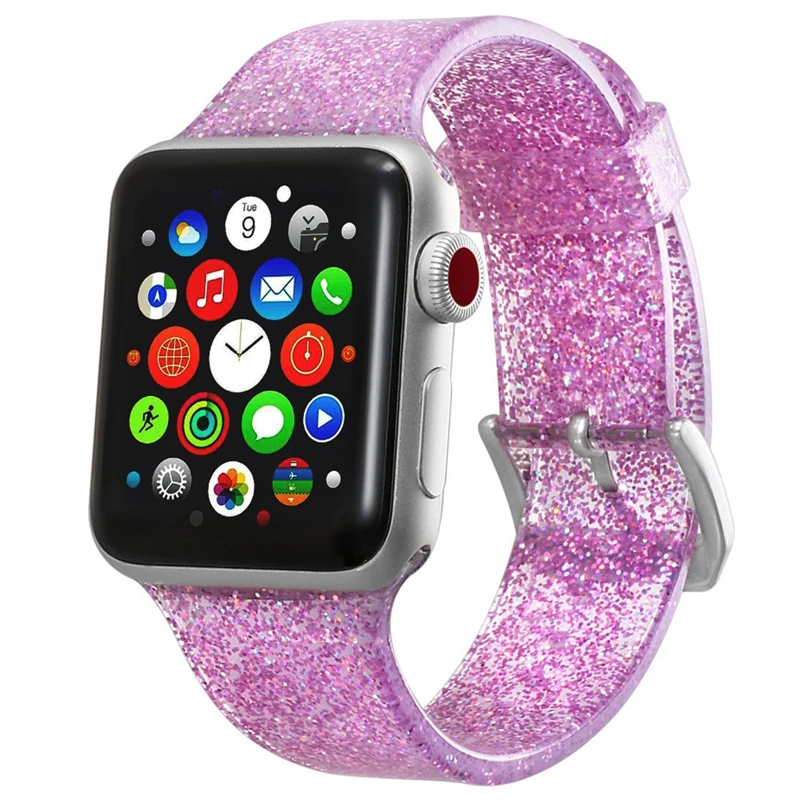 Силиконовый ремешок для Apple Watch 5, ремешок 44 мм, 42 мм, 38 мм, 40 мм, блестящий браслет, ремешок для iwatch Series 5, 4, 3, 2, 4244 мм