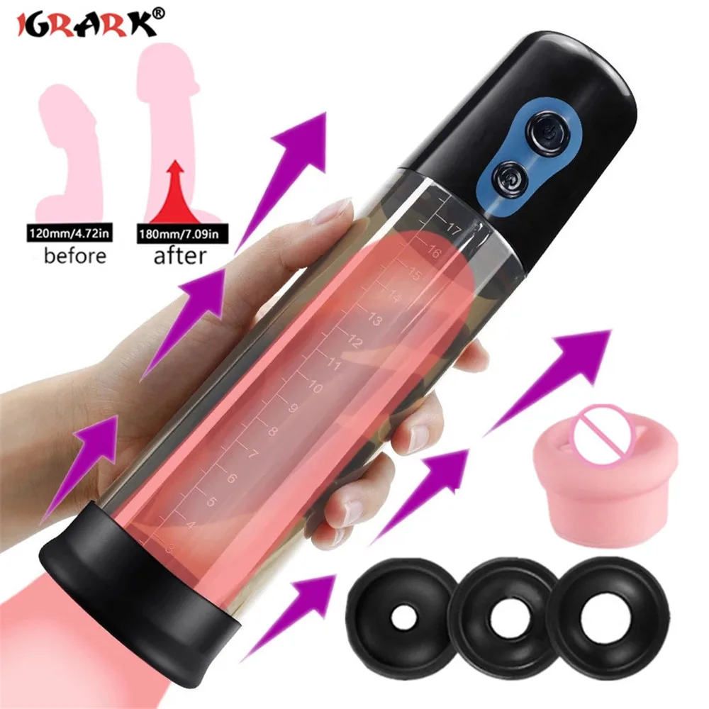 Автоматический Электрический увеличитель пениса, Мужской вакуумный насос для упражнений на пенис, удлинение пениса, Мужской мастурбатор, секс-игрушки для мужчин 18