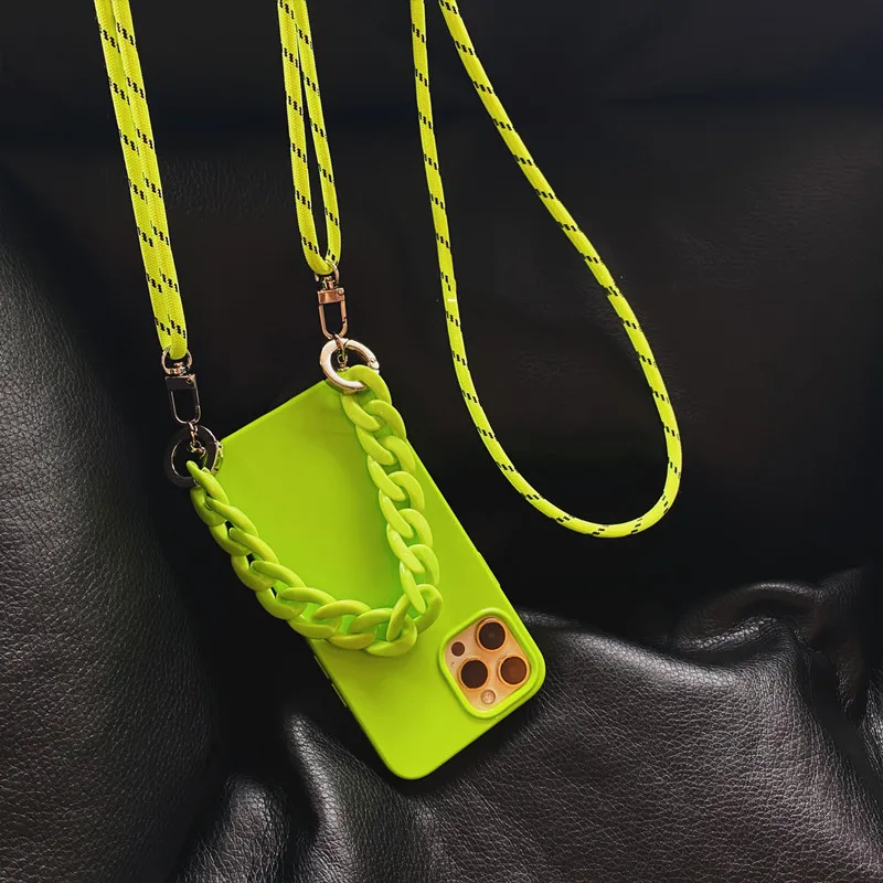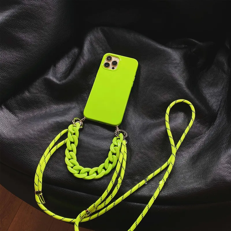 Флуоресцентный однотонный чехол с ремешком через плечо, цепочкой, силиконовый чехол для iphone 12 Pro Max MiNi 11 XR X XS 7 8 plus SE 2