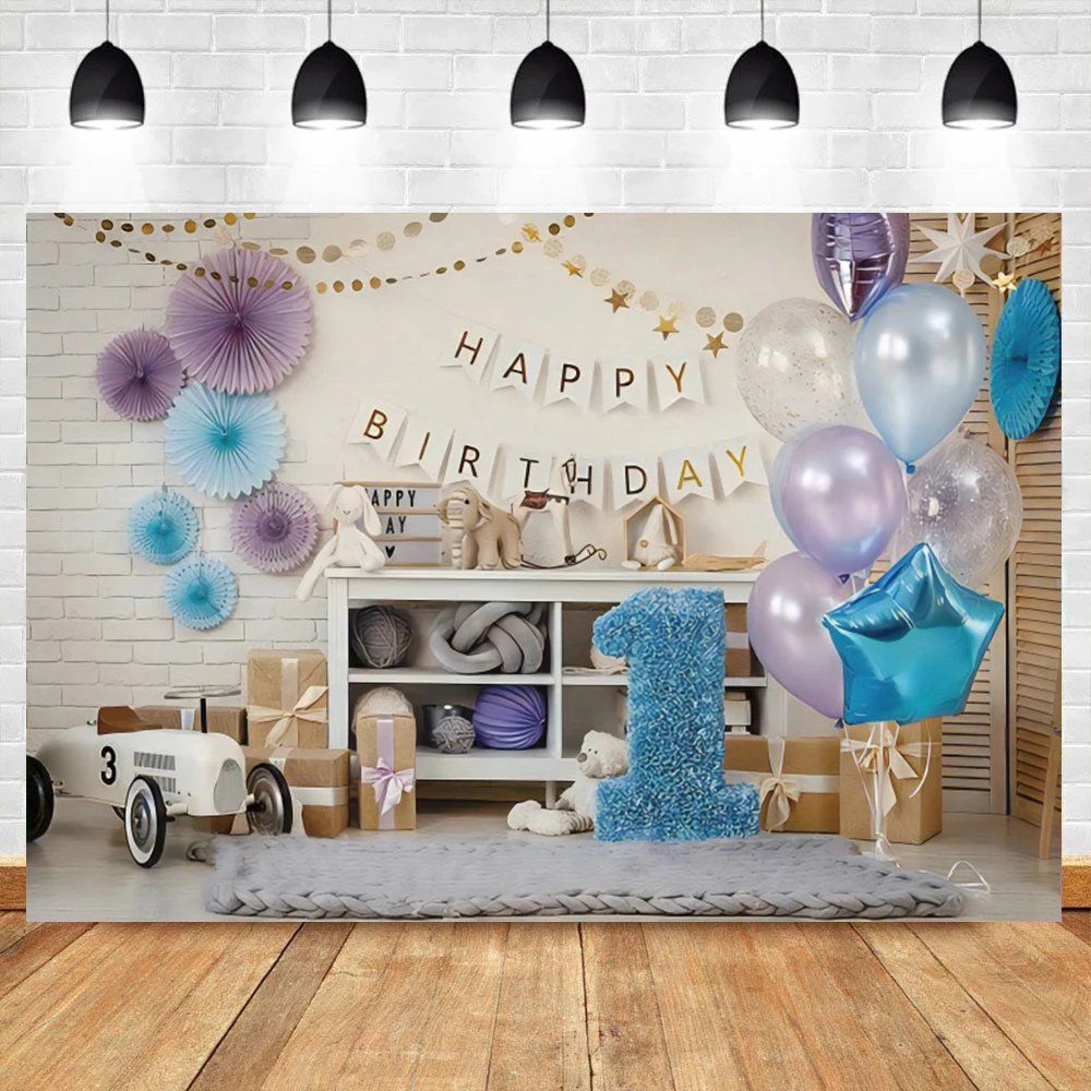 Фон для фотосъемки на день рождения для маленьких девочек и мальчиков, голубой и светильник, воздушные шары "Звезды"