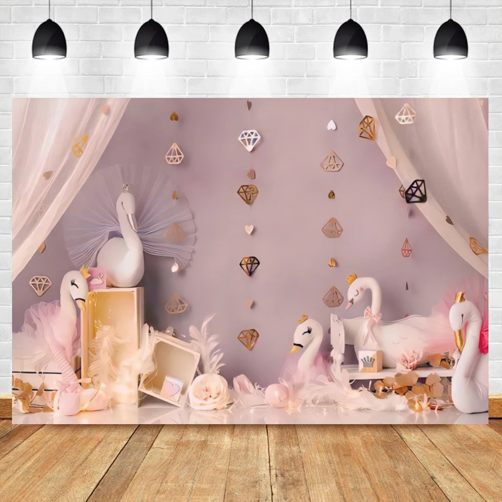Laeacco Лебеди принцесса озеро этап Шторы новорожденных вечеринка п...
