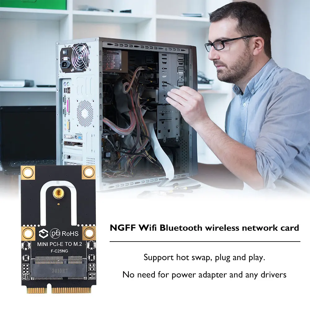 NGFF M.2 Key To Mini PCI-E PCI Express, адаптер преобразователя F-C25NG для Intel 9260 8265 7260 AC NGFF Wi-Fi, беспроводная карта