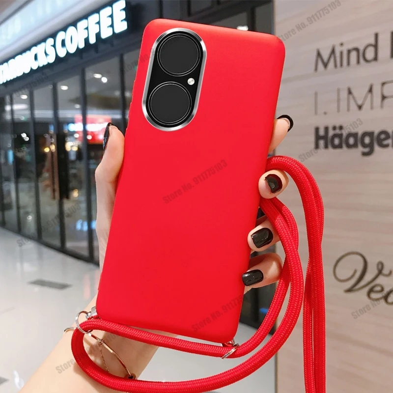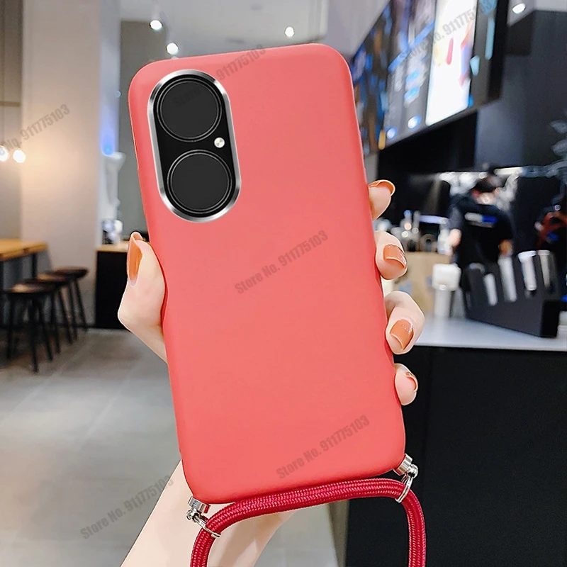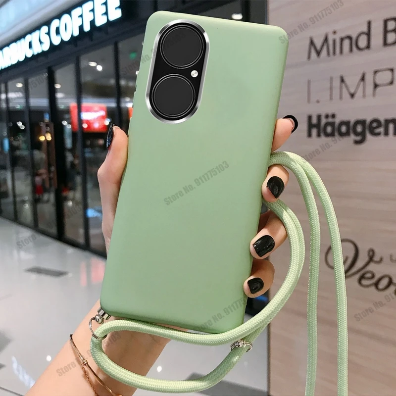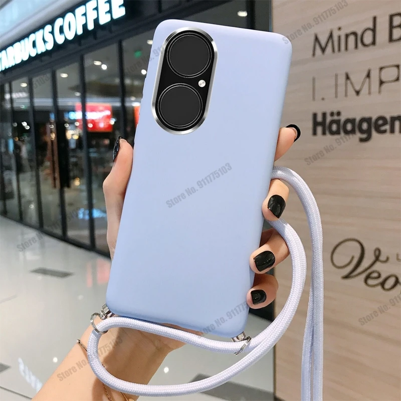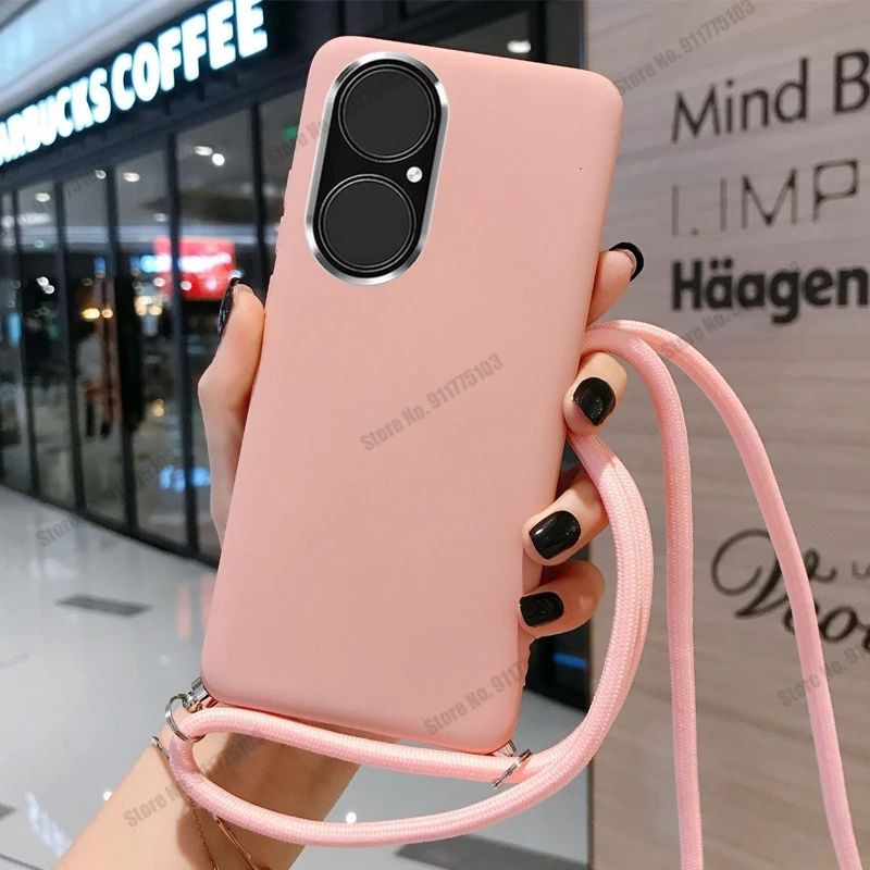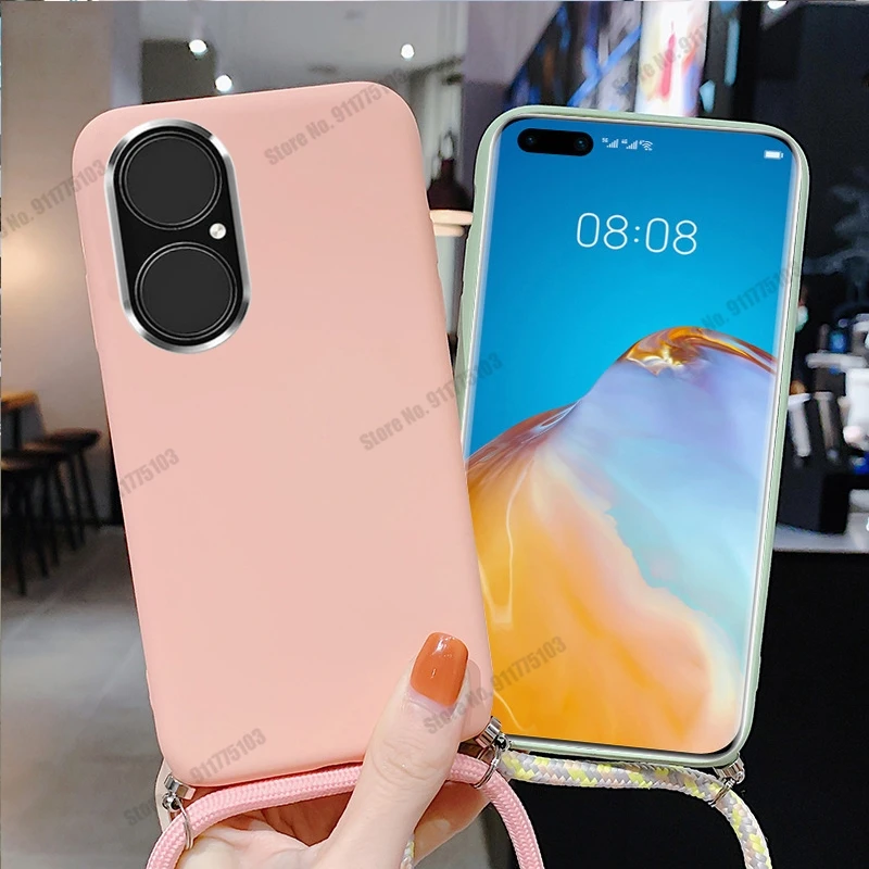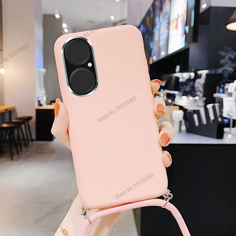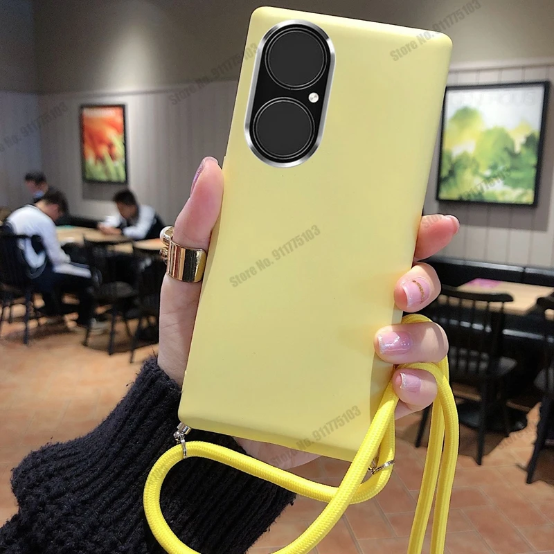 Чехол для Huawei P40 Pro P50 P30 Plus P20 Lite P10, мягкий силиконовый чехол из ТПУ карамельного цвета с ремешком на шею