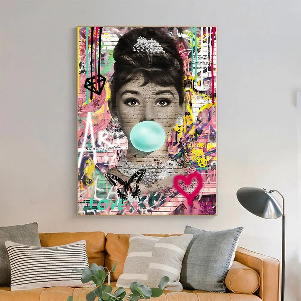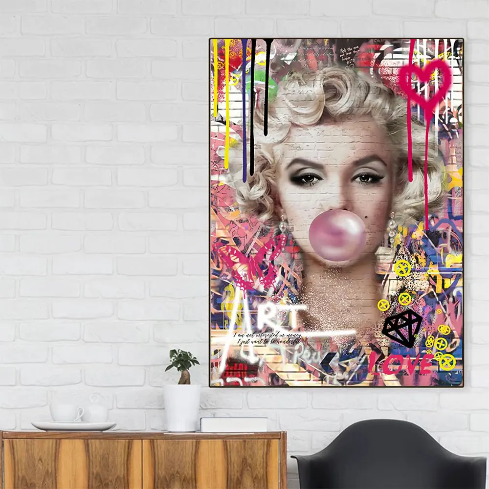 Настенная картина граффити, Картина на холсте с изображением сексуальной женщины в уличном стиле, картина с изображением знаменитой звезды из фильма, декор для спальни