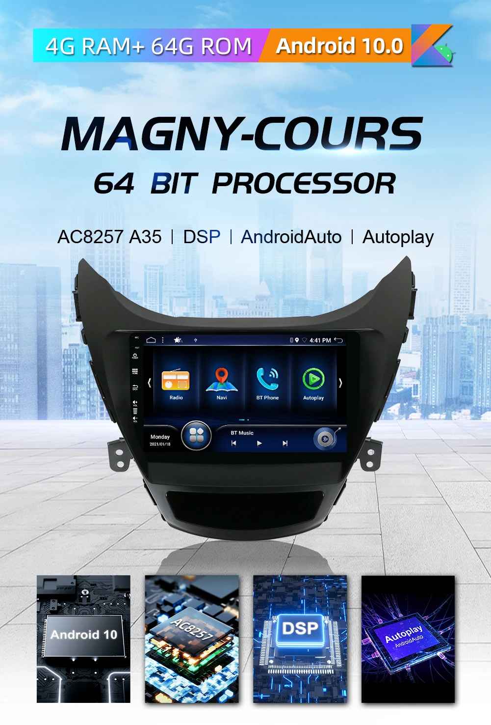 ● Android 10● ОЗУ 4 Гб, ПЗУ 64 ГБ● Мощный Процессор: AC8257 Octa core, A53, 2,5 ГГц, 64Bit процессор● DSP = Система цифрового усилителя. DSP делает качество звука автомобиля лучше, чем раньше.● Встроенный в autoplay & andrpoid auto, позволит вам подключить мобильный телефон к вашей системе транспортного средства, сделать голосовые звонки, отправить сообщение...● Поддержка панорамной функции 360 градусов, (для поддержки 4 камеры AHD)● BT5.0 может поддерживать подключение к точке доступа телефона, вы можете использовать интернет напрямую, и скорость быстрее● Встроенная gps-навигация: мы отправляем бесплатное программное обеспечение карты, пользователи могут использовать его напрямую, или вы можете приобрести в play store для автономной навигации● Камера заднего вида: Бесплатная камера в подарок, автомобиль подключен к обратной передаче для автоматического переключения● Поддержка нескольких языков: около 71 видов языков● Поддержка установки обоев● Поддержка настройки логотипа● Поддержка сабвуфера/RCA● Поддержка AV выхода● Поддержка разделенного экрана● 2 вида уникального дизайна пользовательского интерфейса● DVR: Вы можете добавить видеорегистратор, и автомобиль имеет воспроизведение, доказательства могут быть сохранены (это опционально)● Поддержка функции OBD2/ TPMS/ DAB +/ DVB-T, но эти аксессуары являются дополнительными, необходимо дополнительно купить