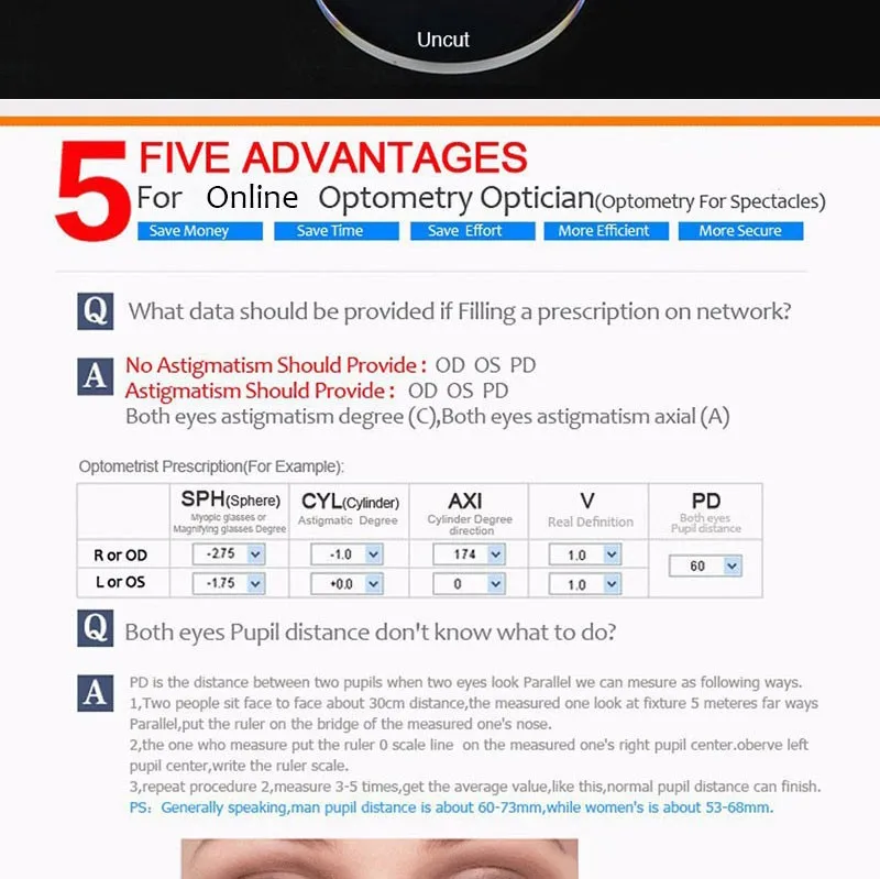 Datas for Prescription GlassesSPH,CYL,AXIS for Both Eye