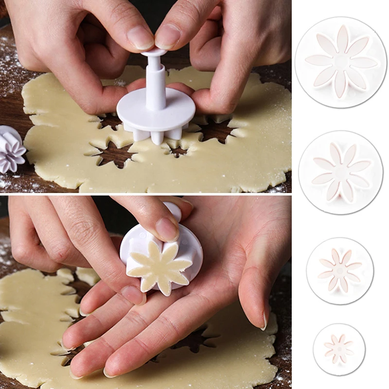 4 шт.компл., пластиковый Плунжер для резки инструменты для украшения тортов из мастики сахара, формы для выпечки печенья, кухонный инструмент, форма для печенья