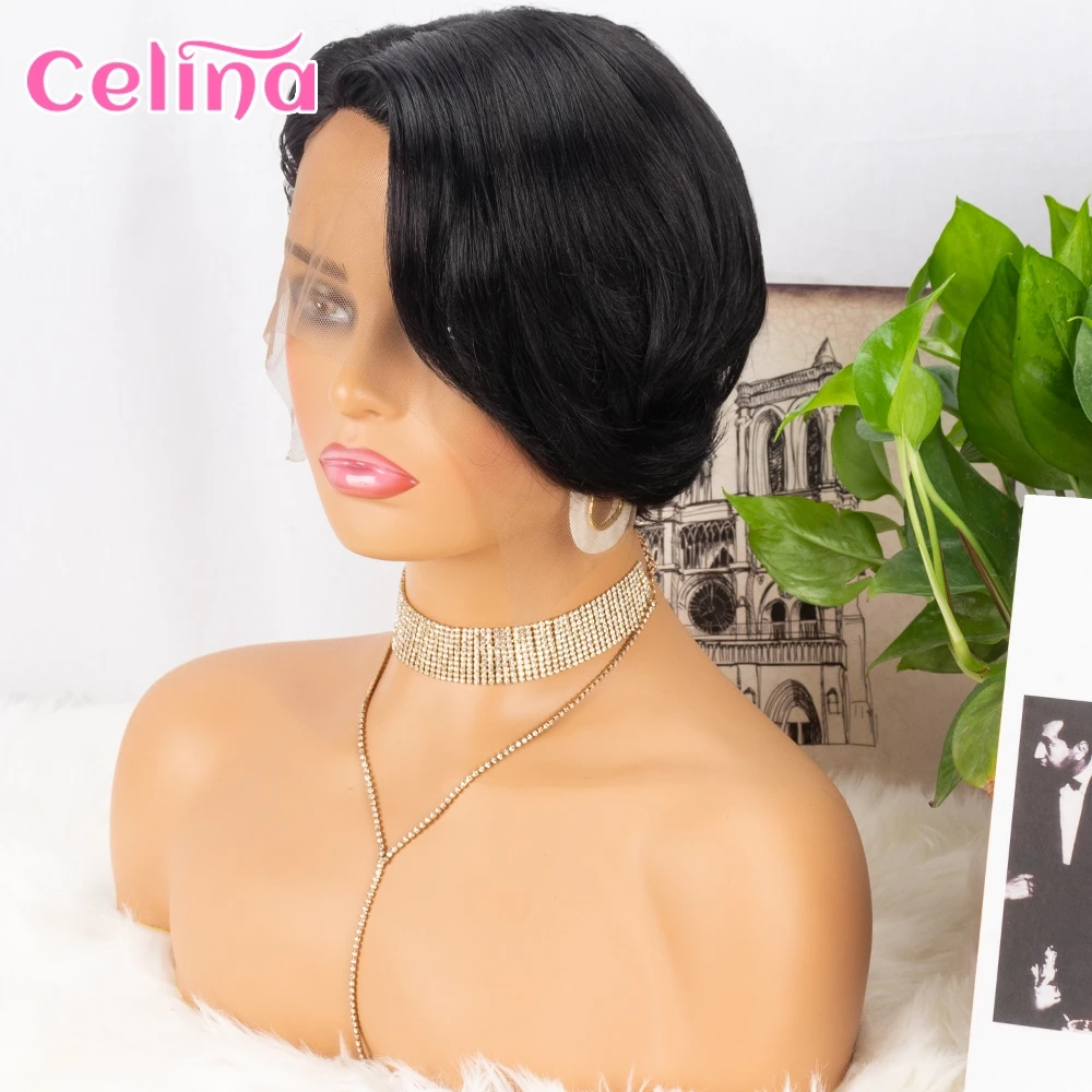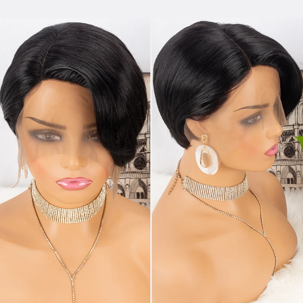 Короткие кружевные парики Pixie Cut, человеческие волосы 13x1 T, парик с Бобом, 150 плотность, бразильские волосы Remy, парики для черных женщин, 5 звезд, волосы
