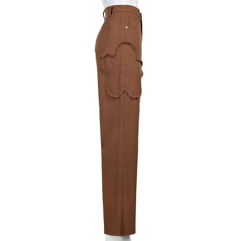 Женские джинсы-карго Y2K, винтажные прямые штаны с цветочным рисунком, высокой талией, на пуговицах, в стиле Харадзюку, уличные джоггеры, 2021