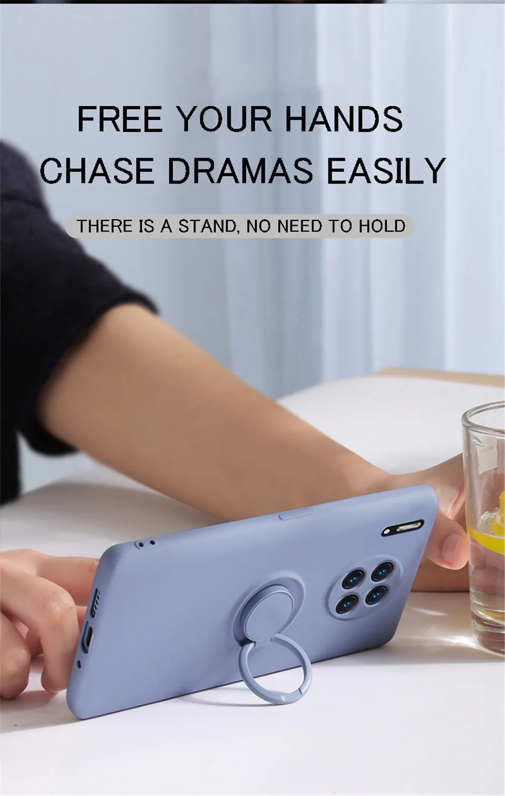 Чехол для телефона из жидкого силикона с кольцом-держателем для Hua...