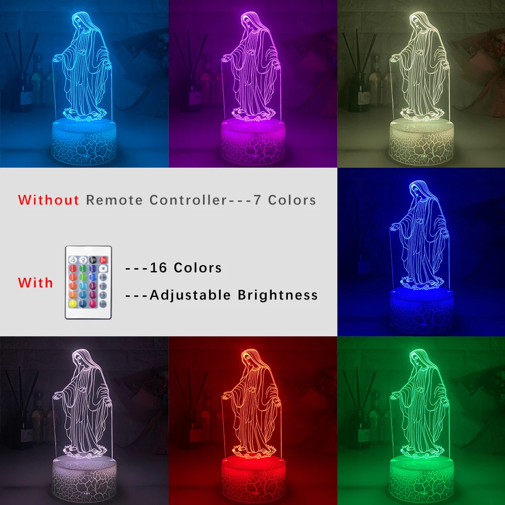 Акриловый 3D светодиодный ночник, благословная Дева Мария, сенсорный, 7 цветов, изменяющийся Настольный светильник, домашний декоративный светильник для сна, рождественский подарок