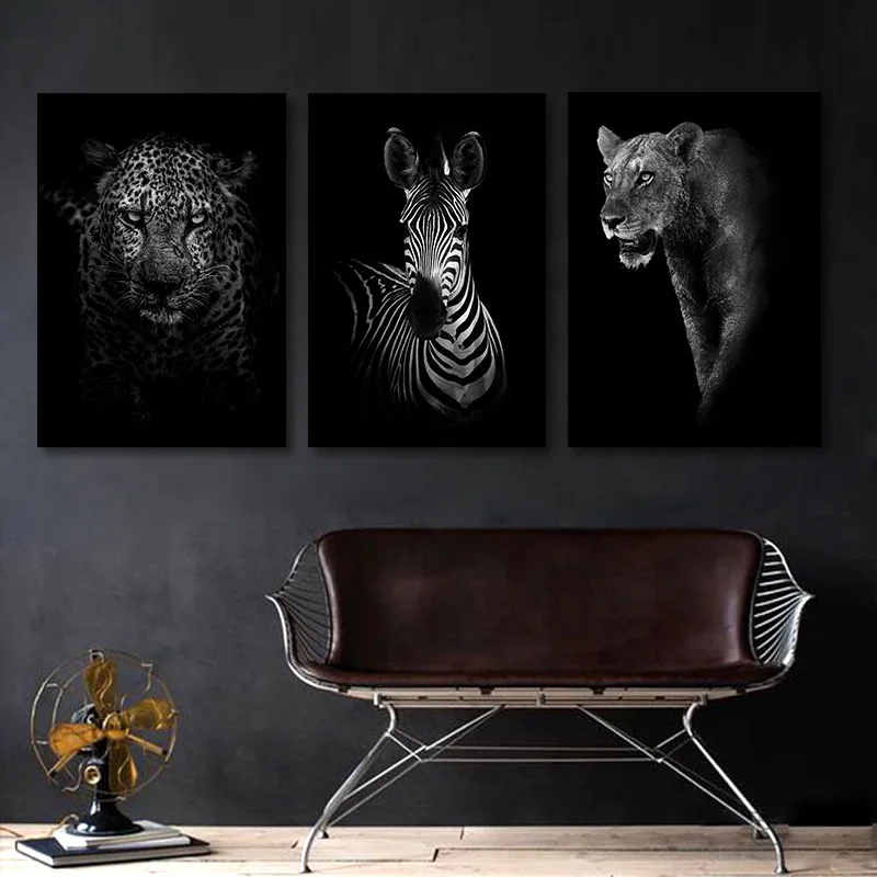 Нордическая Современная животная черная белая Живопись Лев лошадь холст домашний декор спальня гостиная настенное украшение живопись по номерам