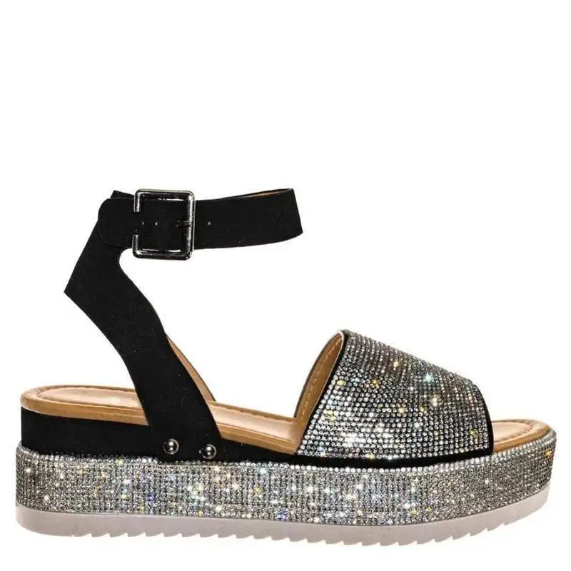 Женские босоножки на танкетке, черные и белые босоножки на толстой ...