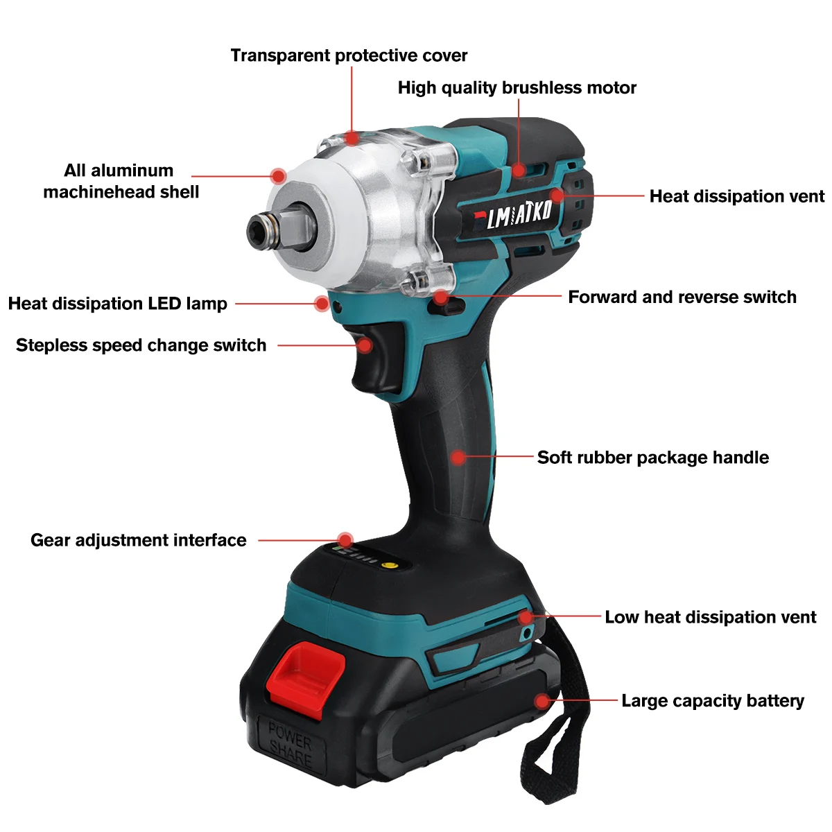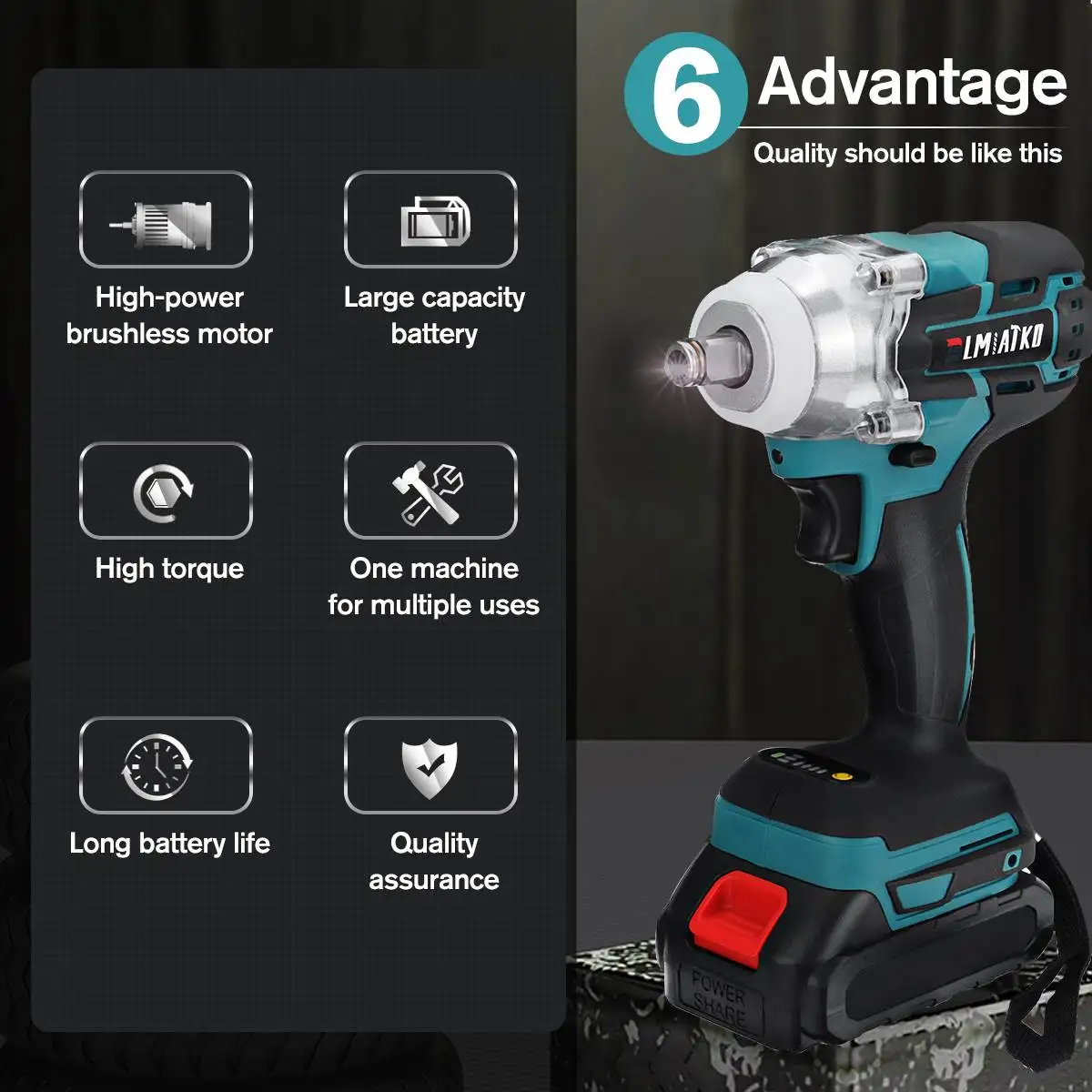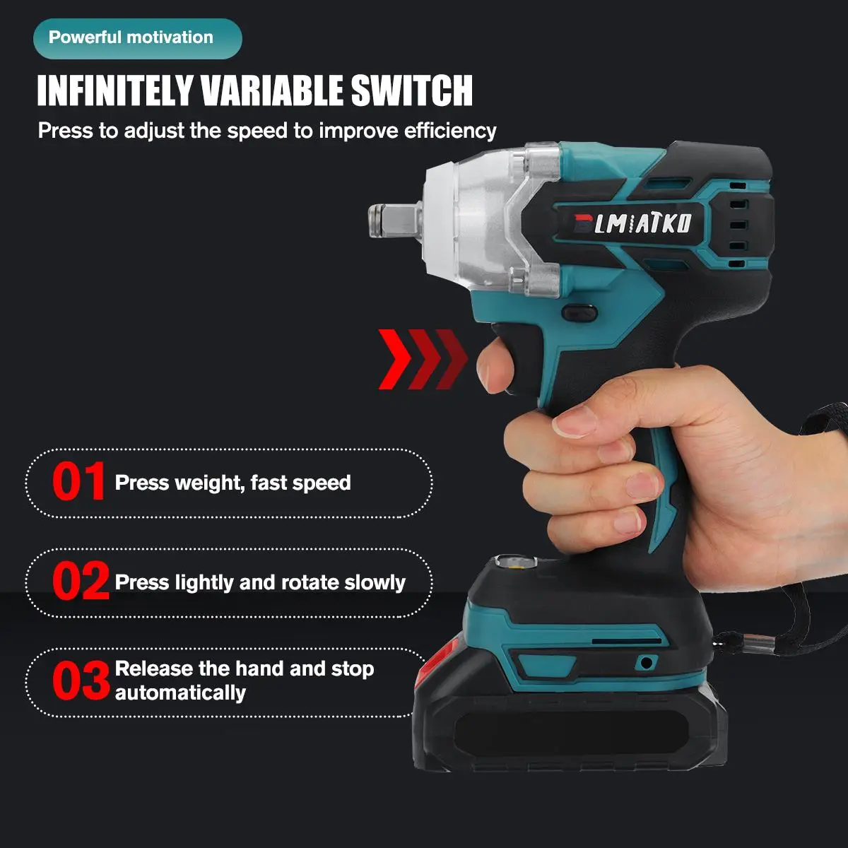 BLMIATKO обновления 4 Скорость 288 с бесщеточным двигателем беспроводной электрический ударный гайковерт с 2 Батарея Перезаряжаемые 12 дюйма ключ, дюймовый стандарт Мощность инструменты