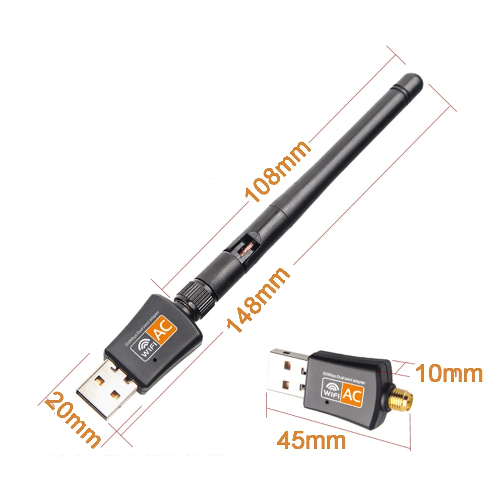 Модель изделия: 600 мЦвет изделия: черныйМатериал изделия: АБС-пластик + позолоченная usb-головкаЧип продукта: Realtek 8811Поддержка скорости сети: 2,4G -- 150Mpbs/5G --- 433MpbsСетевой режим: двойная частота 2,4G + 5,8GПрименимая система: для Windows Vista/XP/2000/7/8/10, для Linux, для MAC OS10.5-10.13USB Размер головки: 4,5*2*1,2 смРазмер антенны: 10,8 смОписание товараДвухдиапазонный usb-адаптер беспроводной локальной сети с высоким коэффициентом усиления с антенной 5dBi обеспечивает небольшой способ быстрого подключения Wi-Fi нового поколения, подключив его к интерфейсу USB 2,0 вашего ПК, ноутбук или Mac, вы можете установить 433 Мбит/с на 5 ГГц или 150 Мбит/с на 2,4 ГГц радио с Wi-Fi роутер. Вы можете переключаться между 2,4 ГГц и 5 ГГц Wi-Fi полосы для того, чтобы избежать помех и оптимальные Wi-Fi Интернет соединение для показаниями вашего ПК; Для получения ноутбук или Mac.Особенности продукта100% новый товар высокого качества.Двухдиапазонный соединения, максимальная скорость передачи данных до 600 Мбит/с: Wi-Fi 5 ГГц 433 Мбит/с, 2,4 ГГц 150 Мбит/с.Поддерживает стандарт 802,11 переменного тока, обратная совместимость с продуктами 802,11 a/b/n/g.Высокоскоростной порт USB 2,0.Примечание: Этот продукт поддерживает диапазон Wi-Fi 5 ГГц, некоторые из них не могут использовать, так как подключенное устройство не поддерживает Wi-Fi диапазон 5 ГГц, перед покупкой убедитесь, что устройство поддерживает Wi-Fi 5 ГГц, спасибо.СовместимостьПолностью совместим с основными операционными системами: для Windows 2000/XP/Vista/7/8/8.1/10, для Mac OS 10,4 ~ 10,11, для Linux.Совместим со стандартом IEEE802.11a/b/g/n/ac.802.11a: 6, 9, 12, 184, 36, 48, 54 Мбит/с; 802.11b: 1, 2, 5,5, 11 Мбит/с; 802,11 г: 6, 9, 12, 18, 24, 36, 48, 54 Мбит/с; 802.11n: (20 МГц) MCS0-7, максимум до 72 Мбит/с.Посылка включает в себя:1x Wi-Fi 5 ГГц/2,4 ГГц Беспроводной Dual Band 802.11AC USB Wi-Fi адаптер1. Нет розничной упаковки.2. Допускается погрешность в 0-1 см из-за ручного измерения. Пожалуйста, убедитесь, что вы не возражаете перед покупкой.3. Из-за разницы между различными мониторами изображение может не отражать фактический цвет изделия. Спасибо!