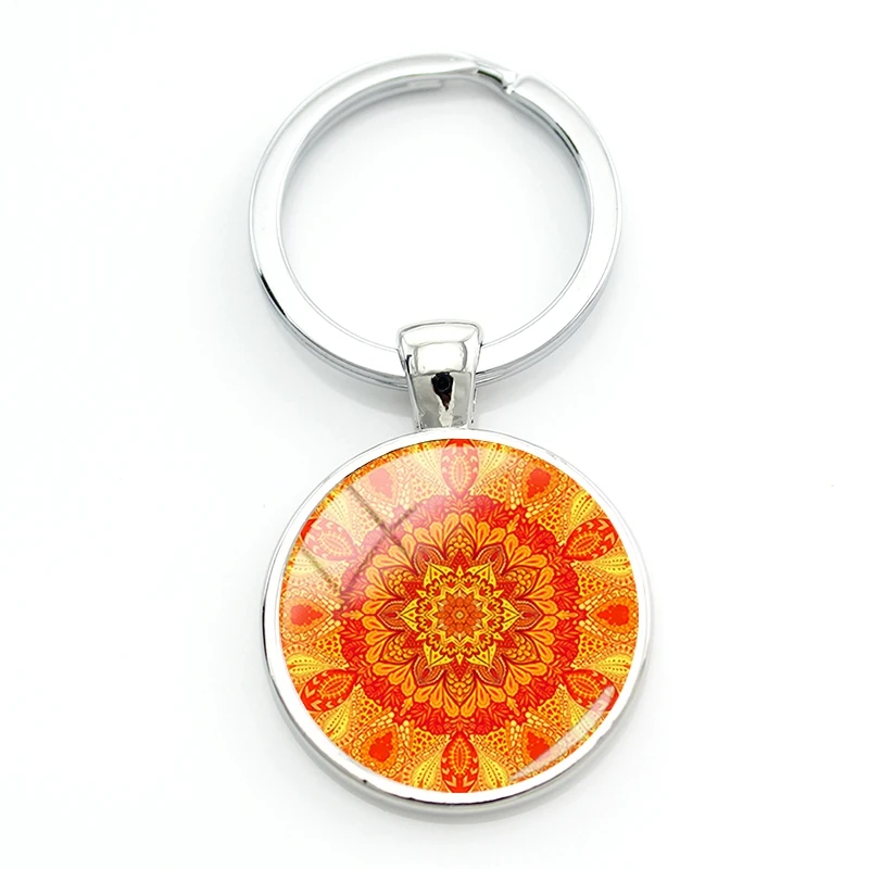 TAFREE новый дизайн брелок с узором Мандала стеклянные кабошоны цветы брелок для ключей индийские ювелирные изделия для буддистских верующих