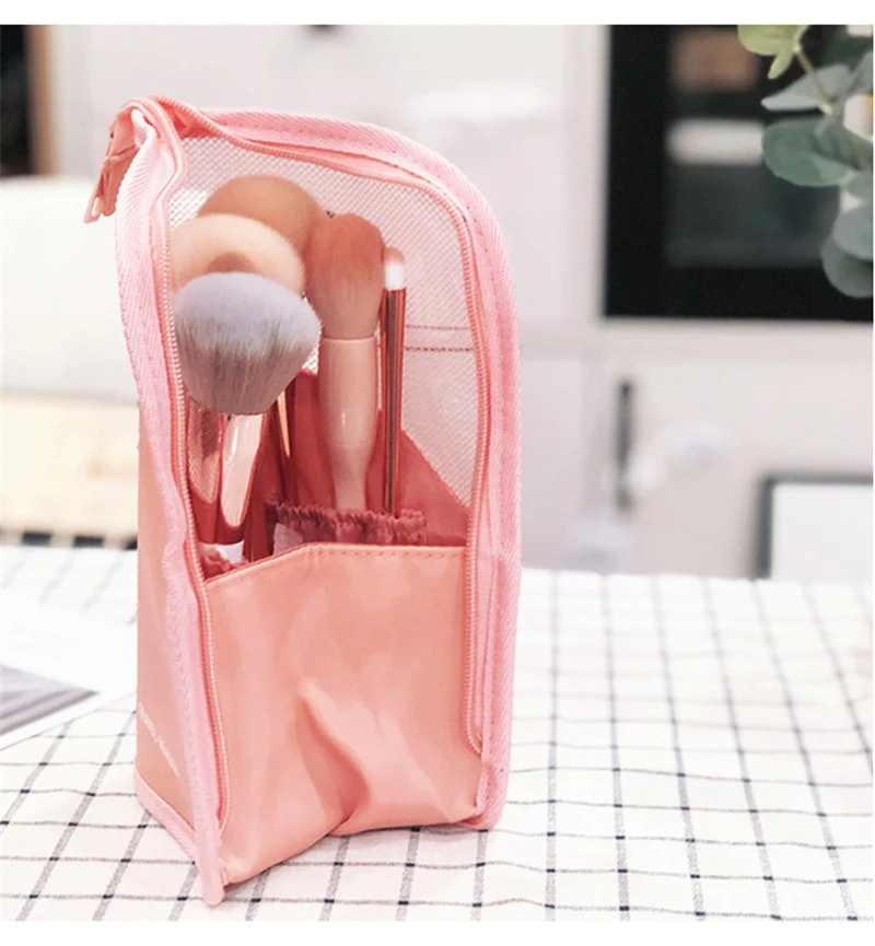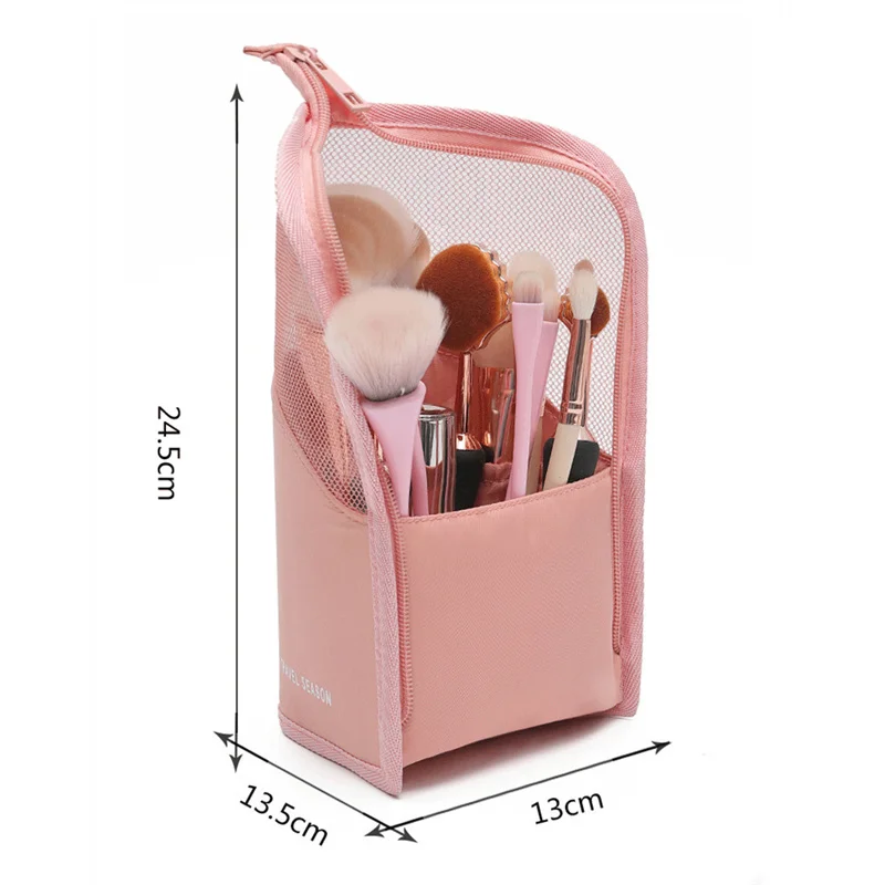 Наименование товара: косметичка с подставкойМатериал: нейлонРазмеры: 24,5*13,5*13 смЦвет; Розовый, черный, как показано