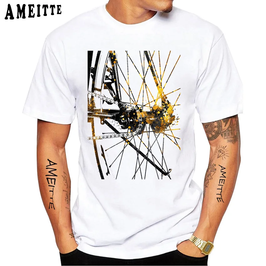 Футболка мужская Спортивная с коротким рукавом, Классическая тенниска с фиксированным снаряжением для езды на велосипеде, повседневный Топ, цвет белый, лето