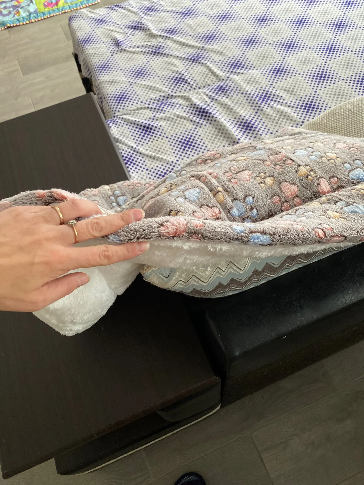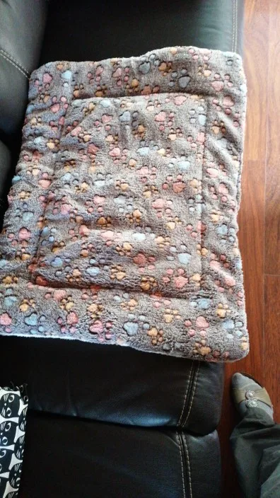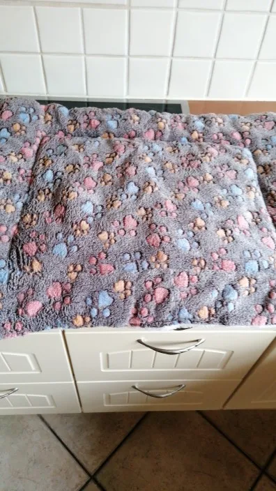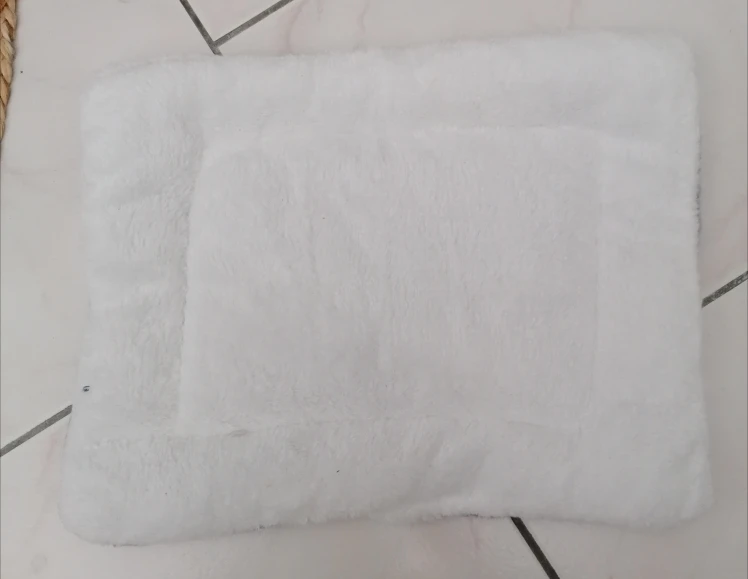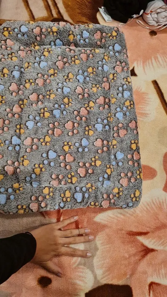 Подстилка пришла очень быстро, принёс курьер. Коврик из мягкого материала типа плюша, но очень тонкий. На фото кажется толще, зачем пишет что утолщенная? Хотя бы тонкий поролон или синтепон положили.