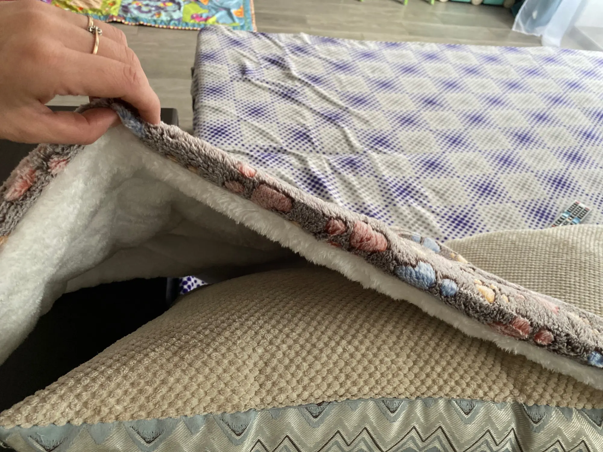 Купил в качестве чехла для сиденья офисного стула больше, чем кошечка (хотя кошки иногда спят на моем офисном стуле) очень хороший продукт. Изделие состоит из 2 слоев мягкого флиса. Не кажется слишком мягким между слоями. Если между слоями есть прокладка, я не чувствую ее, когда на ней сидит. Точно не такой мягкий, как на фотографиях. Все еще работает.