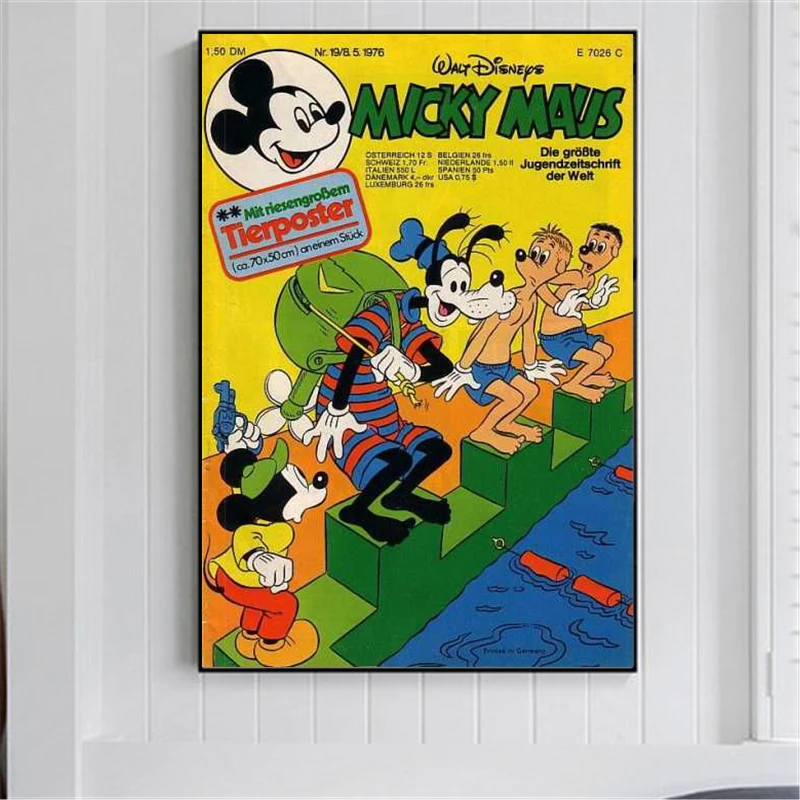 Диснеевский мультяшный холст с Микки и Минни, настенное искусство, ...