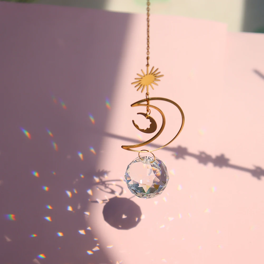 Подвеска Ловец света с кристаллами, подвеска звезда на Луну, хрустальные ветрянки ручной работы, садовые окна, свадебные занавески, люстра сделай сам, Декор