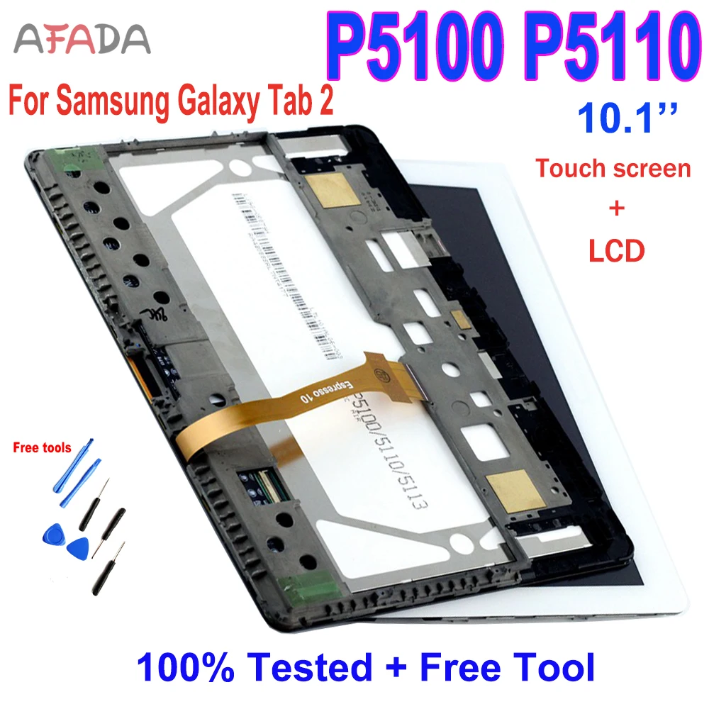 ЖК-дисплей 10,1 дюйма для Samsung Galaxy Tab 2 P5100 P5110, сенсорный экран, дигитайзер в сборе, рамка