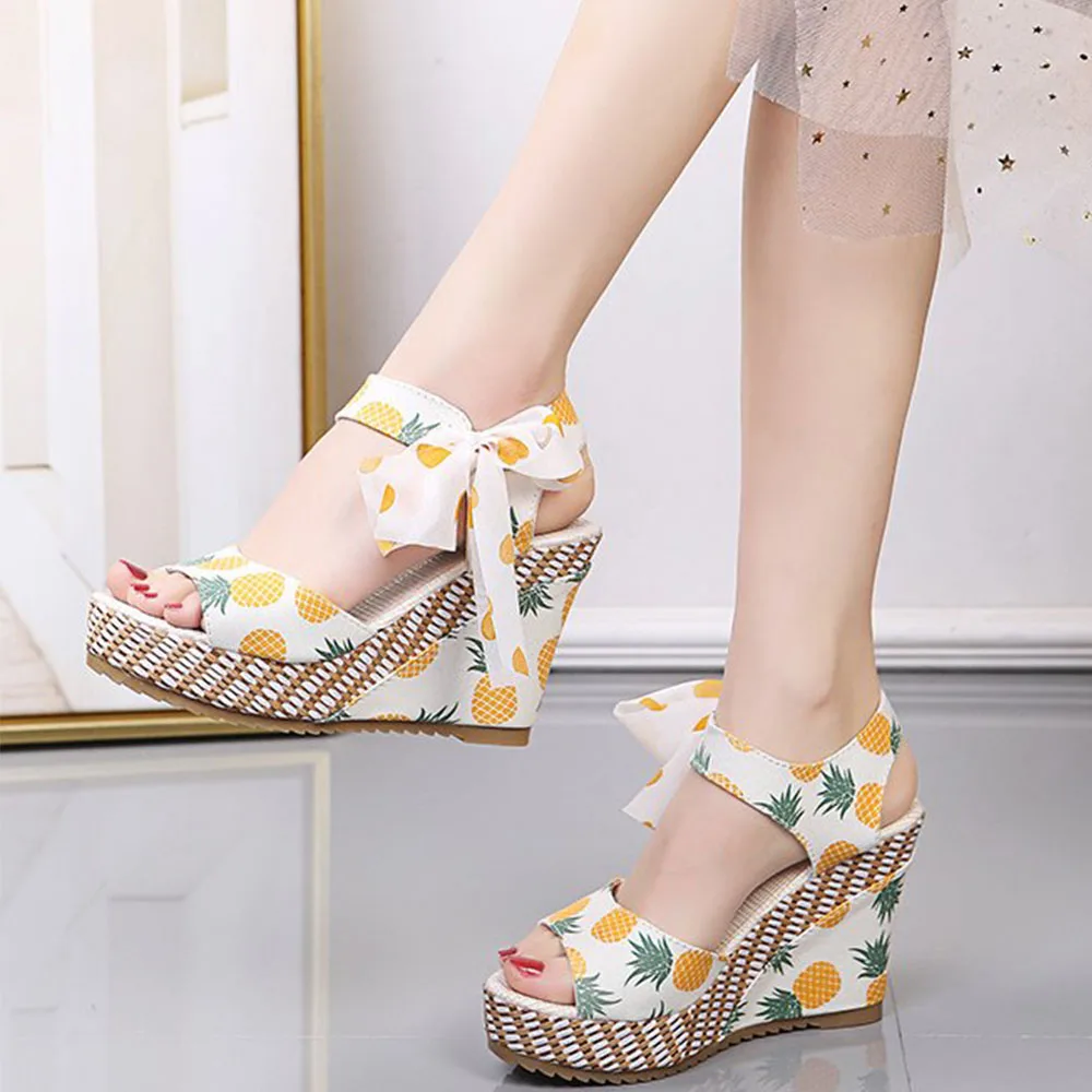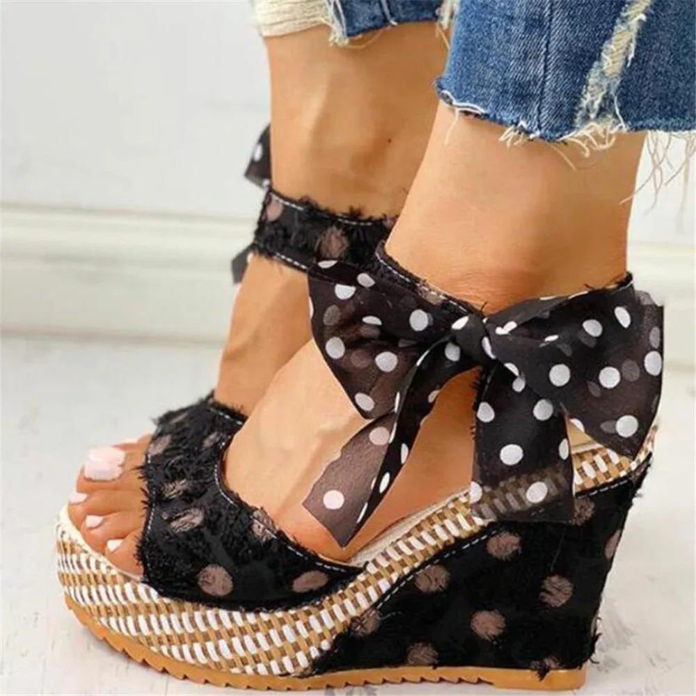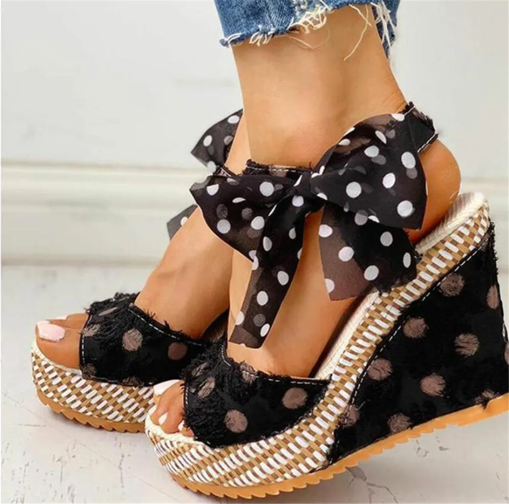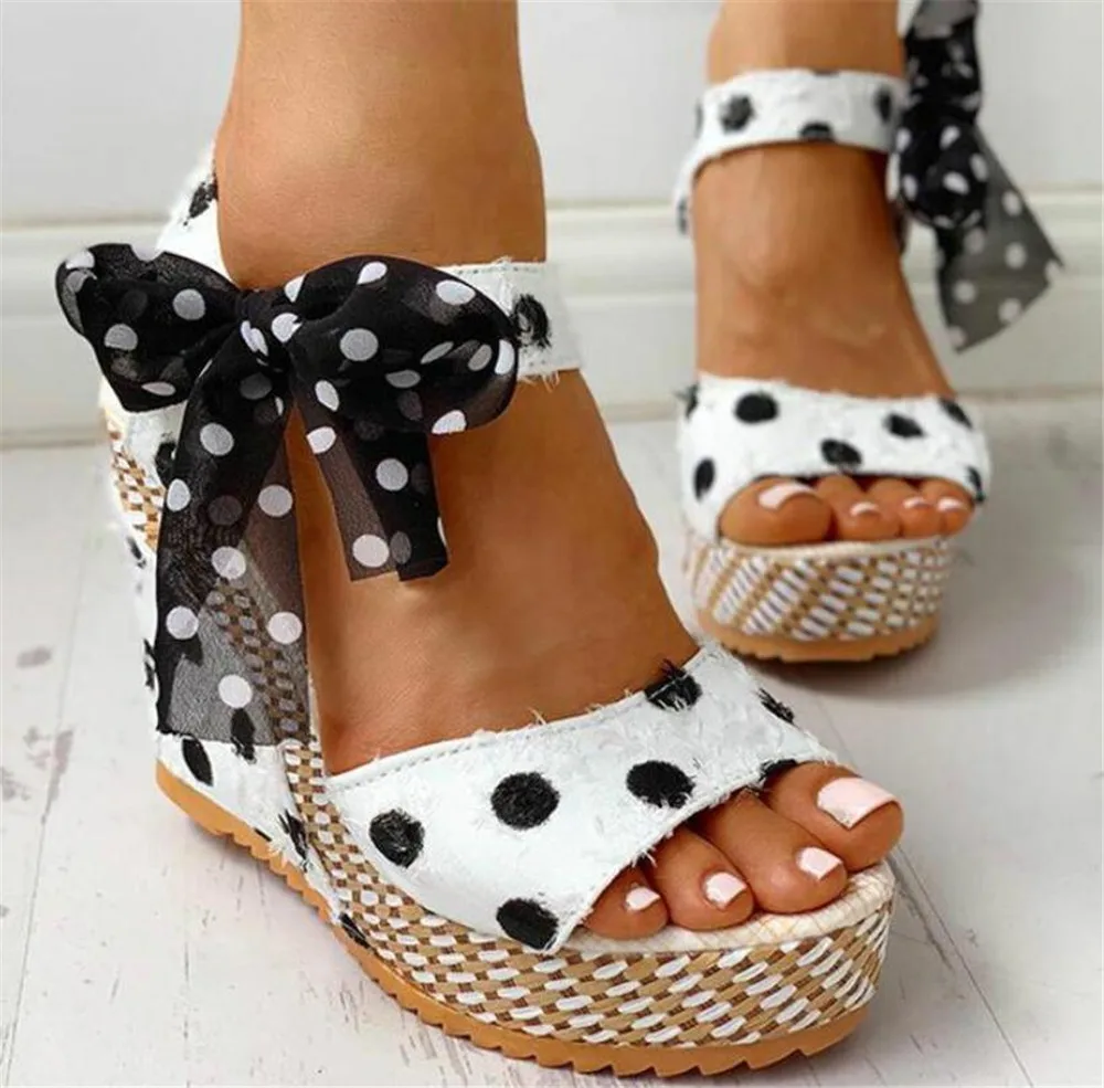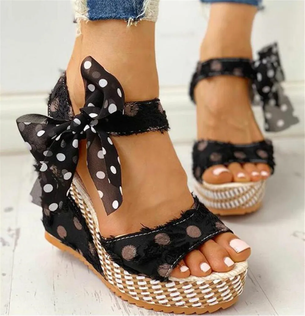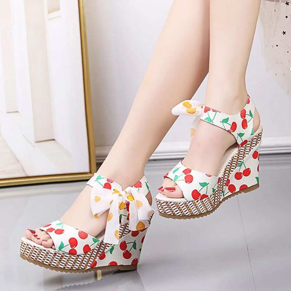 Женские босоножки на танкетке Lapolaka, летние босоножки на очень высоком каблуке, с цветочным узором, в горошек