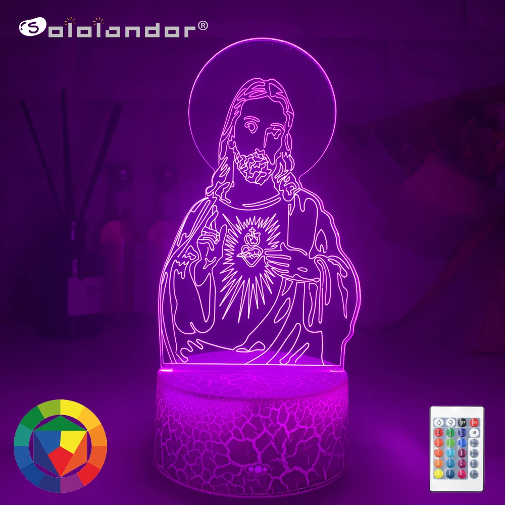 3D Светодиодная лампа с изобрасветодиодный ением Иисуса Христа, детский прикроватный столик, светильник, меняющие цвета, ночник, лампа