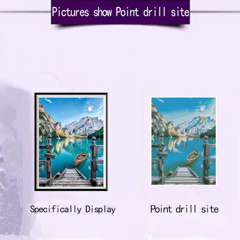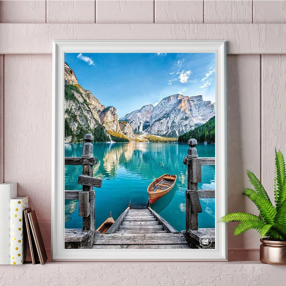 Pintura de diamante 5D, joyier de botaje, barco de paisaje, bordado...