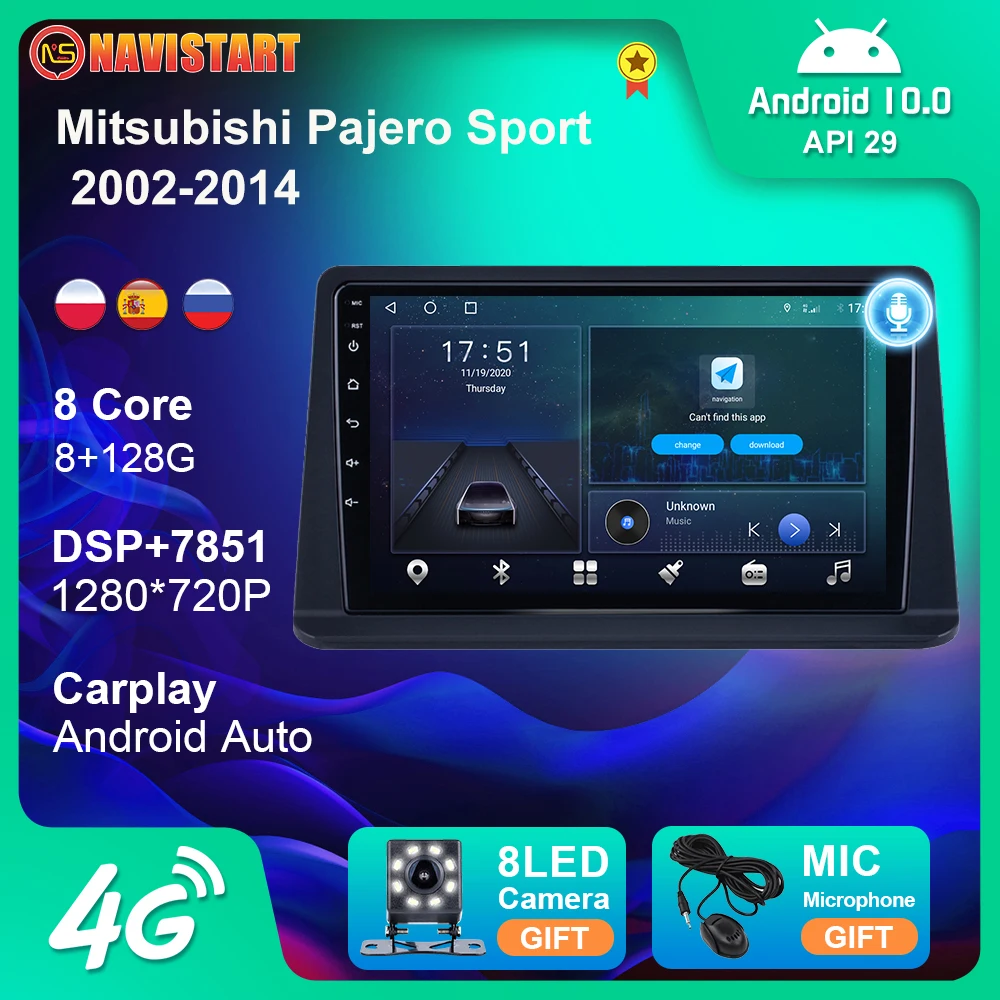 Автомобильный мультимедийный видеоплеер, 8 + 128 ГБ, Android 10, для Mitsubishi Pajero Sport 2002-2014, навигация GPS, 4G, Wi-Fi, BT, стерео, 2din, без DVD