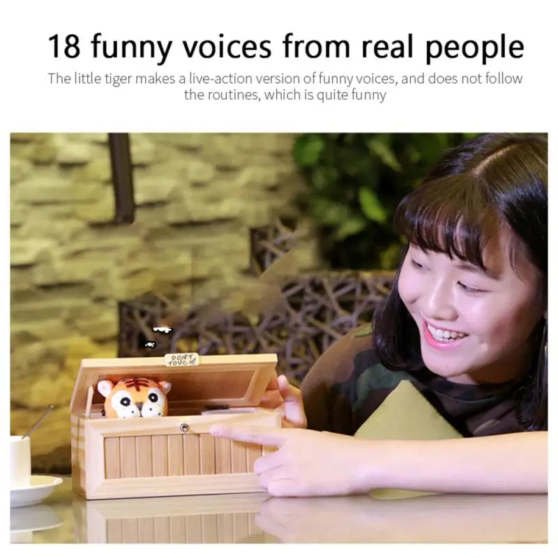 Деревянная электронная бесполезная коробка, забавная игрушка с милым тигром, подарок для мальчиков и девочек, Детские интерактивные игрушки, украшение для стола для снятия стресса