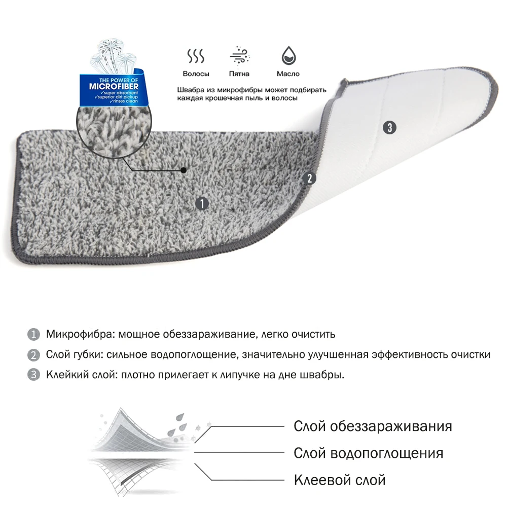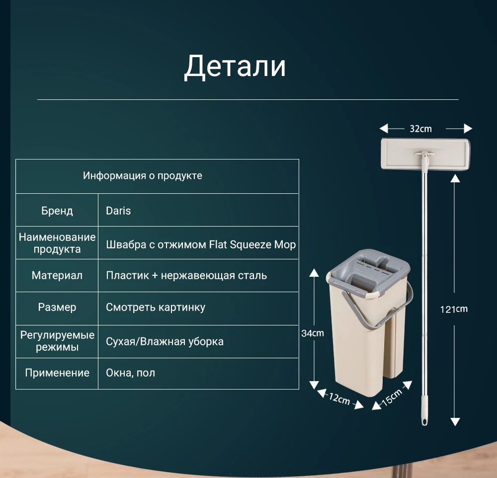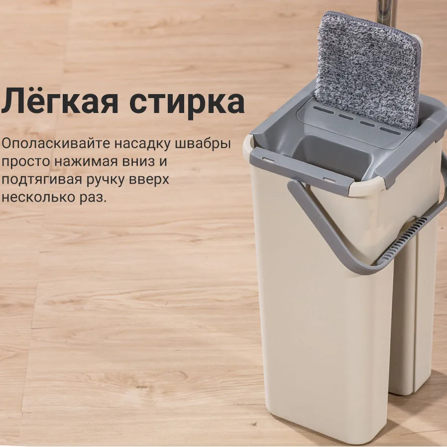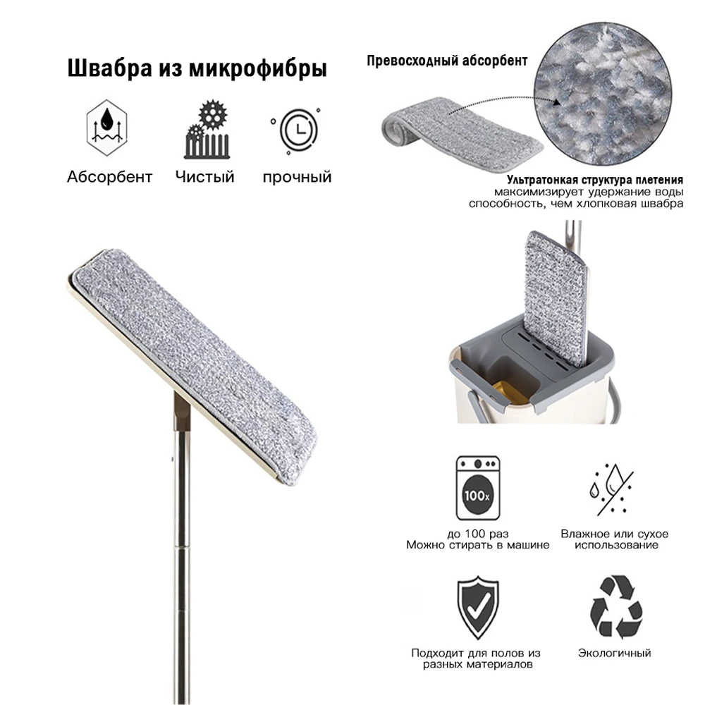 Flat Floor Mop and Bucket Set with 6 Reusable Microfiber Mop Pads, Hand-Free Wringing Cleaning Floor Mop Bucket Wet and Dry Use