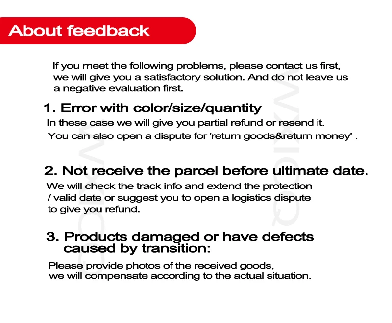 Уважаемый клиент, 1. Перед отправкой курьерской посылка для каждого продукта, мы проверим каждую деталь продукта, чтобы убедиться, что продукт не имеет проблем с качеством. 2 Мы будем использовать профессиональные упаковочные материалы для защиты вашего продукта и предотвращения повреждения продукта. Вы можете купить этот товар с уверенностью