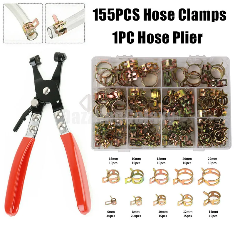 Пружинные зажимы 6-22 мм для автомобиля и грузовика, 155 шт., зажим для топливного, масляного, водяного шланга, набор зажимов для труб + 1 шт. плоскогубцы для шлангов