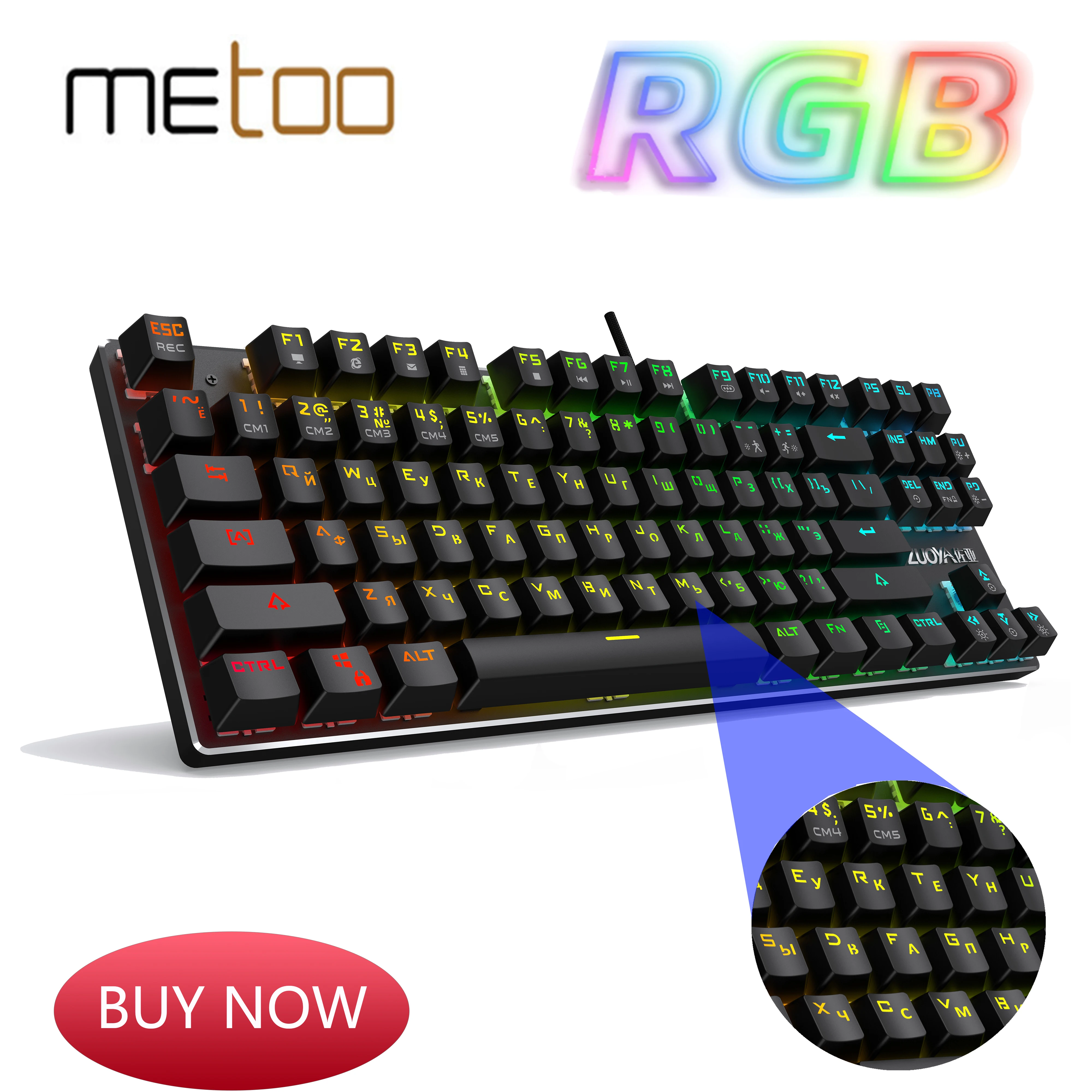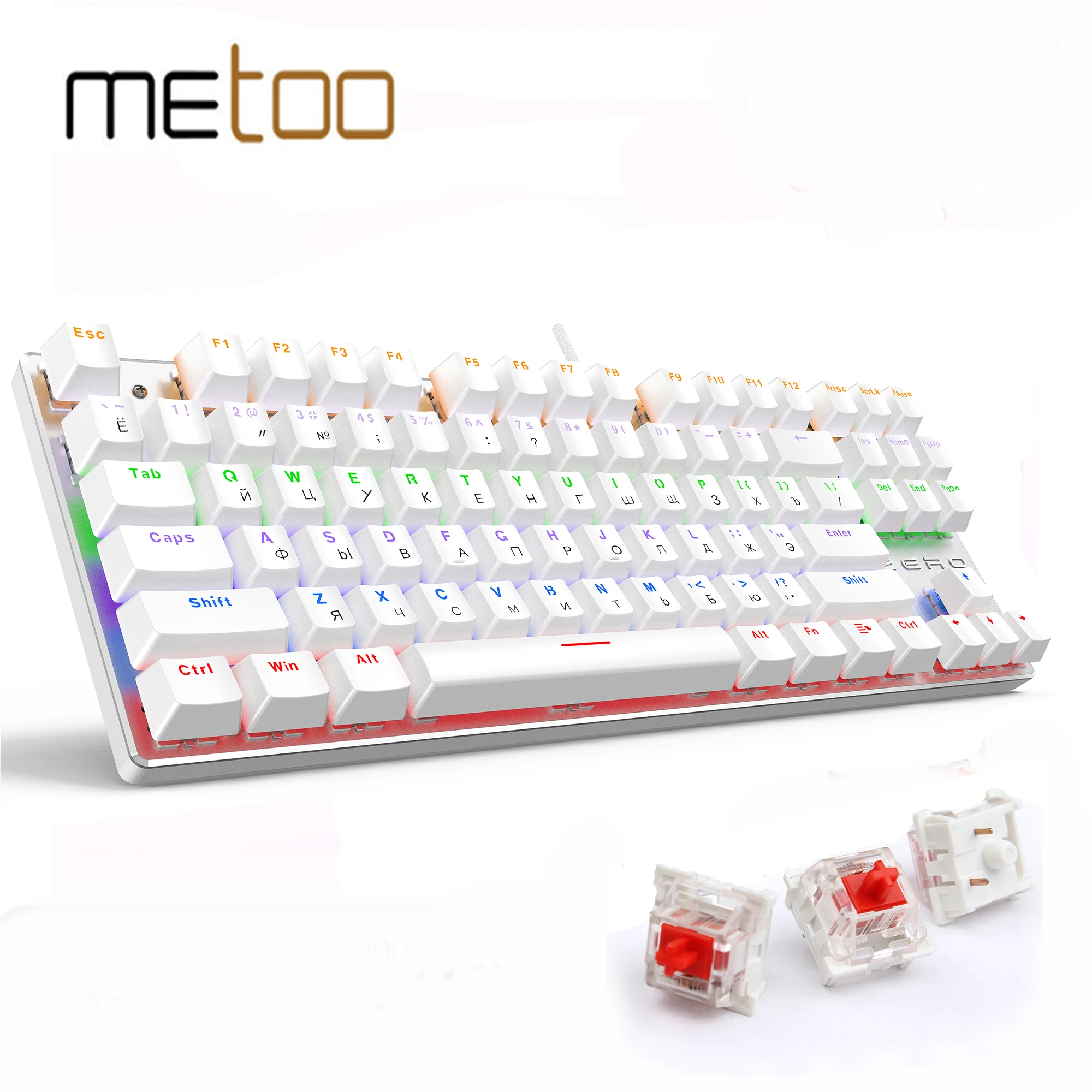 Проводная игровая механическая клавиатура METOO, 87104 клавиш, русскаяиспанская светодиодная подсветка для геймерского ноутбука