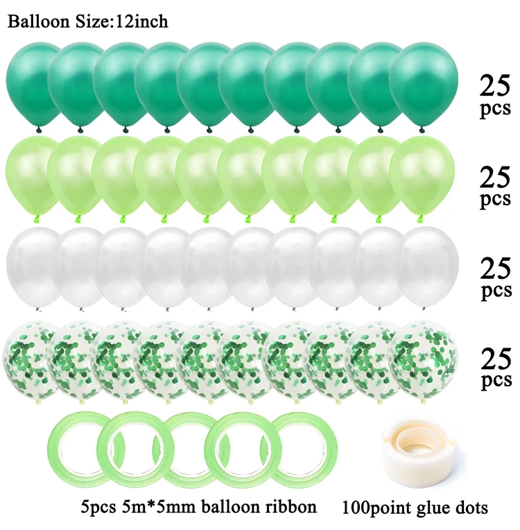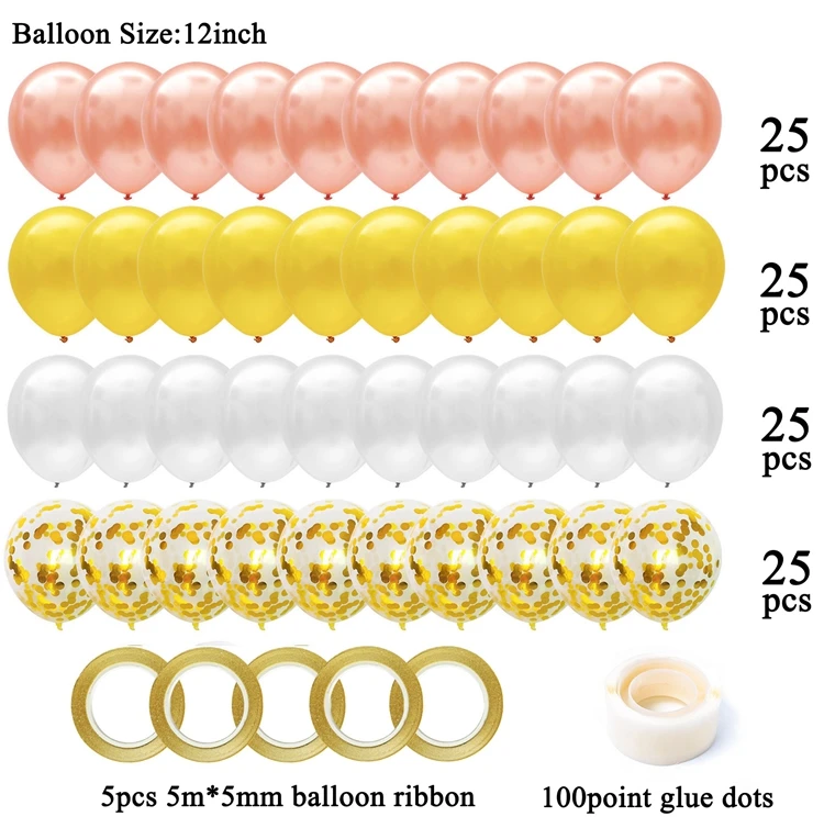 100 шт./компл. Смешанные 12 дюймов латексные шарыКомплект включает: 10 шт. 12 дюймов конфетти воздушные шары, 75 шт. 12 дюймов латексные шары, 5 штук 5 м * 5 мм лента для воздушных шаров, 1 упаковка из 100 точек точки клея.Во всех изделиях используется 2,8 г воздушные шары хорошего качества.Вы можете использовать инструмент для надувания. Он может плавать при заполнении гелием.Подходит для различных вечерние украшения: День рождения, свадьба, детский душ, новый год, тема русалки, тема динозавра и т. Д.Примечание:Будет разница в цвете между цветом воздушного шара и изображением, прежде чем он будет надут.Новые латексные шары будут немного пахнуть, просто будьте в порядке при взрыве.