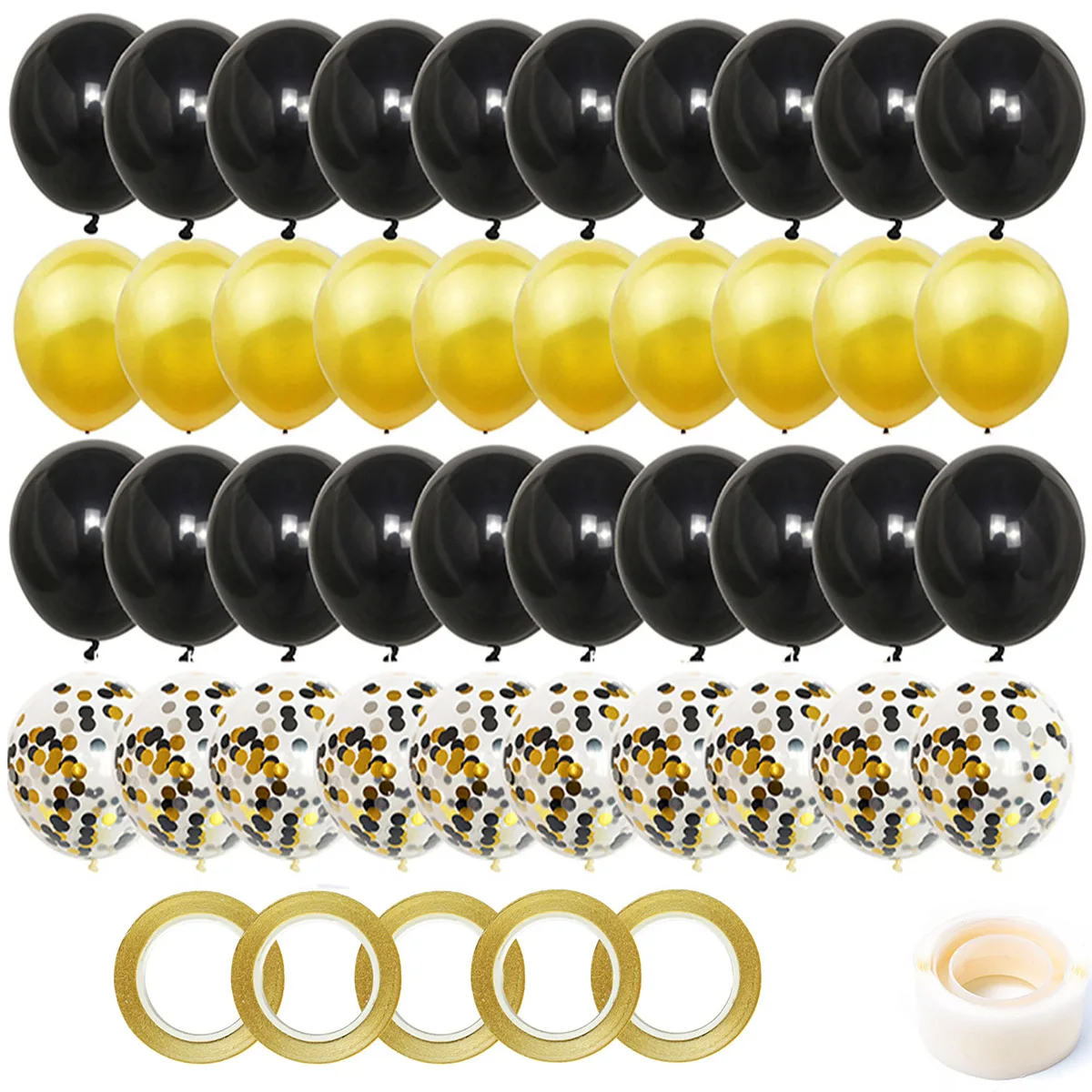 Шары латексные с конфетти, золотистыечерные, 100 шт.