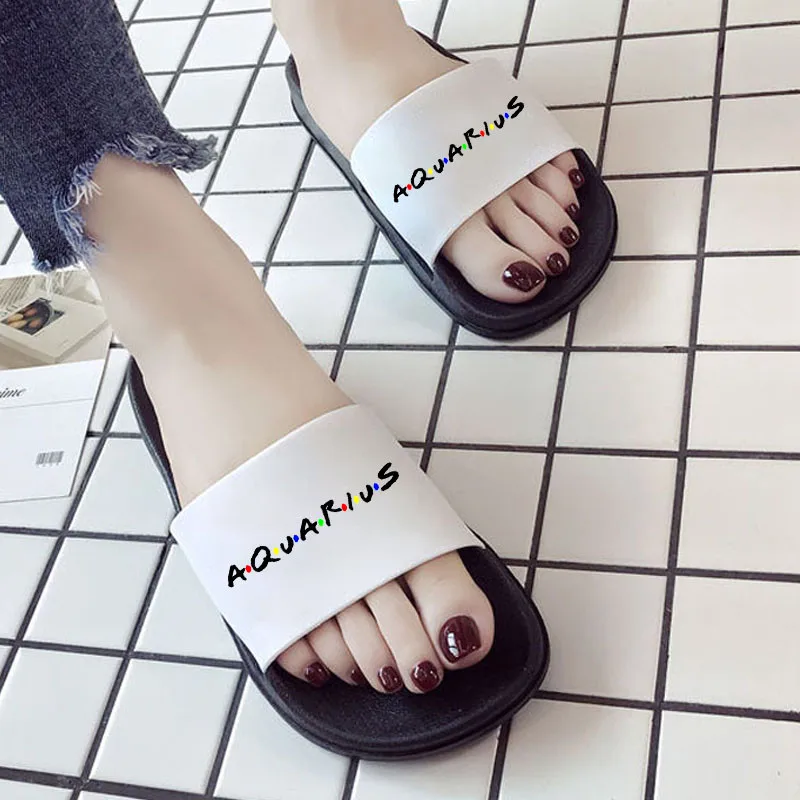 2021 женские туфли двенадцать созвездия Зодиака Знаки обувь для женщин летние пляжные модные тапочки с открытым носком женские сланцы с принтом