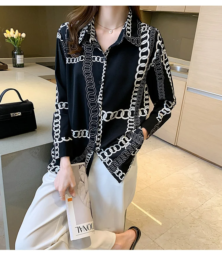 Шифоновая рубашка с длинным рукавом и принтом цепей, B010