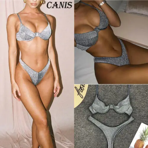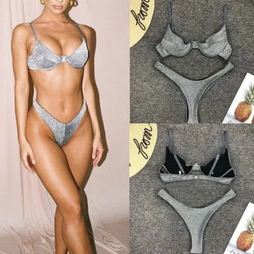 Новинка 2021, женский купальник из металлической пряжи, сексуальный купальный костюм со стальными кольцами, купальник с низкой талией, купальник для вечевечерние в бассейне