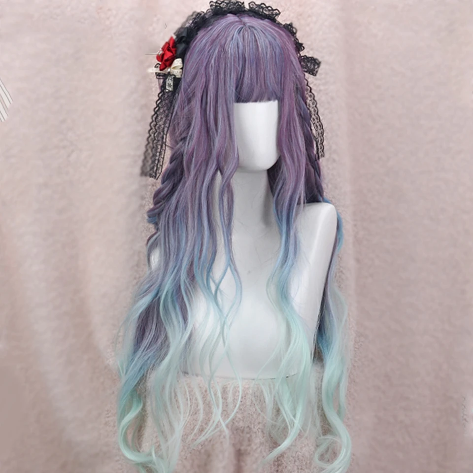 Длинная кудрявая розово-синяя челка HOUYAN с зажимом маленький пари...