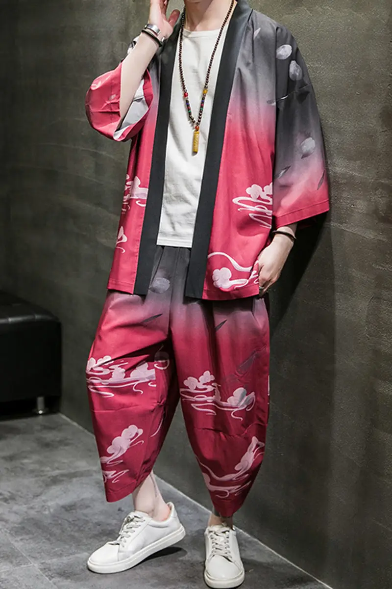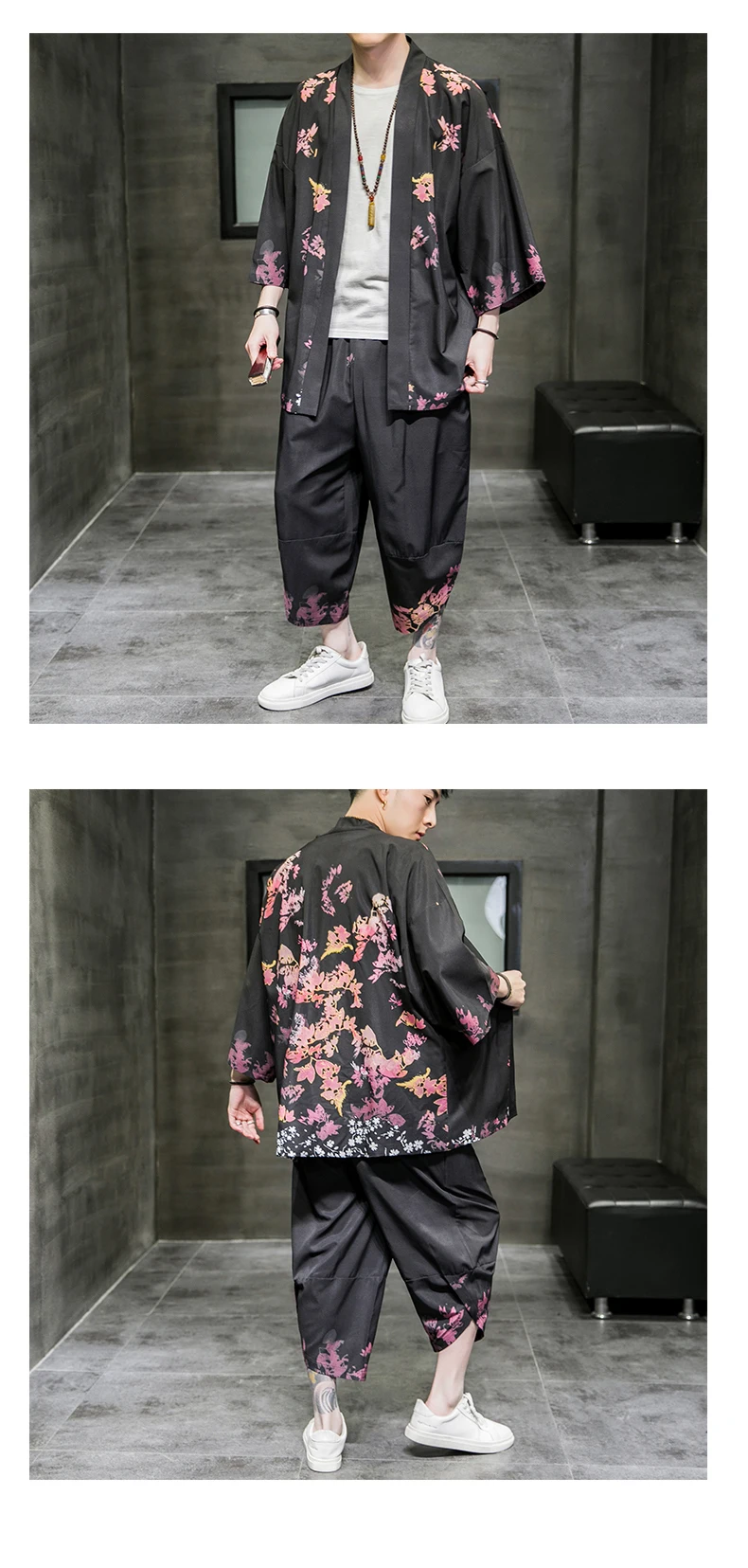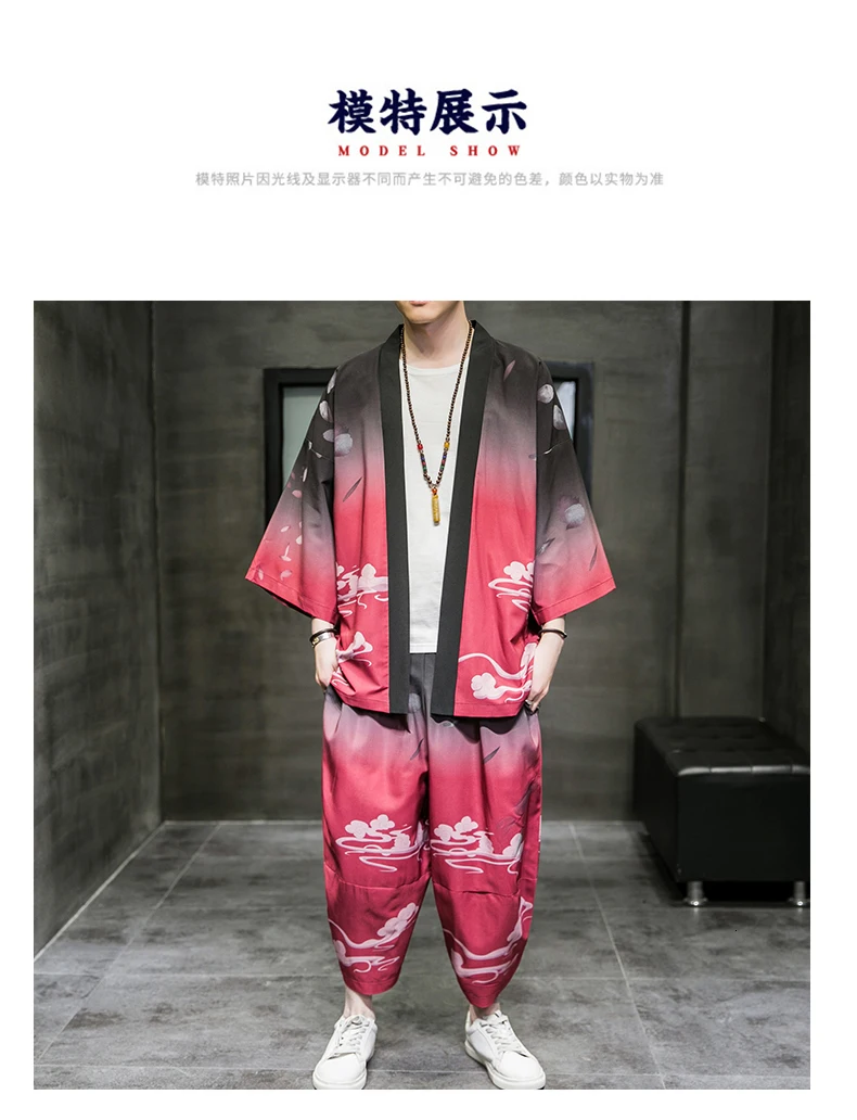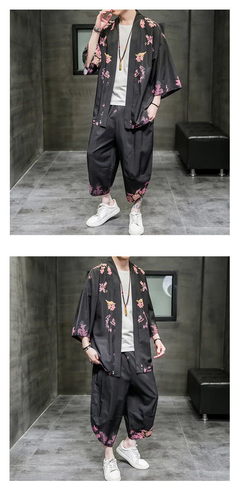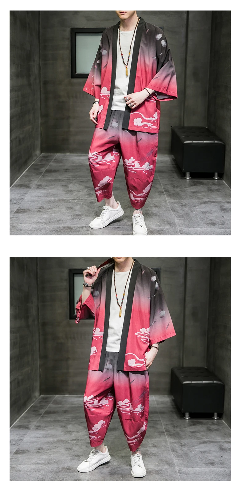 Костюм MrGB мужской в китайском стиле, весна-лето 2021, солнцезащитный костюм с принтом из ледяного шелка, топы большого размера, винтажный комплект из двух предметов