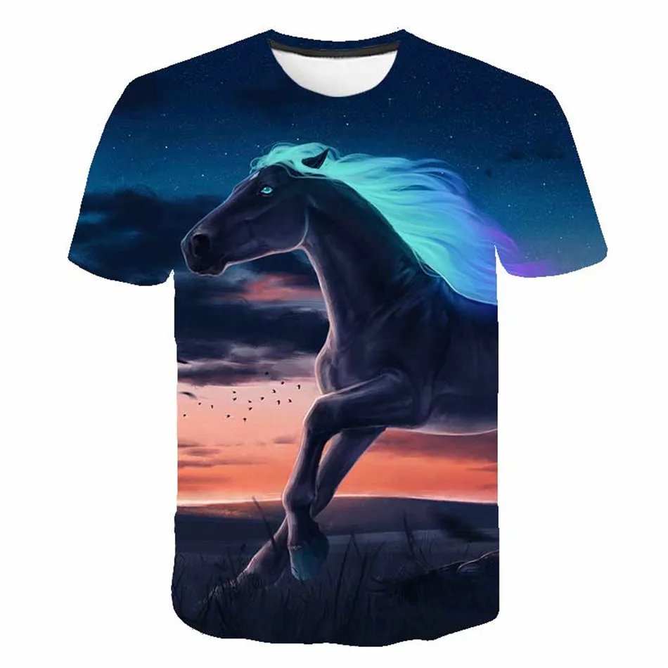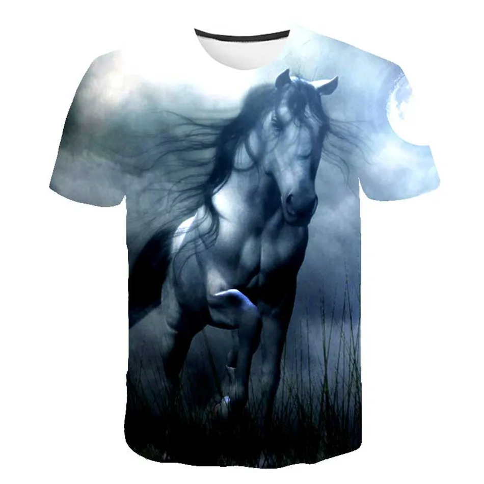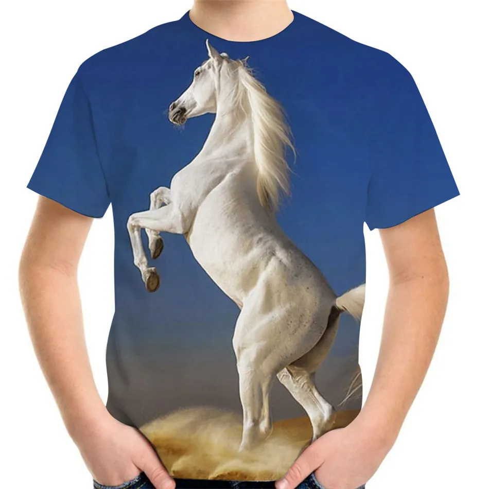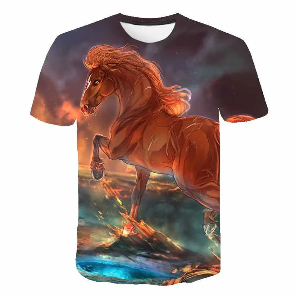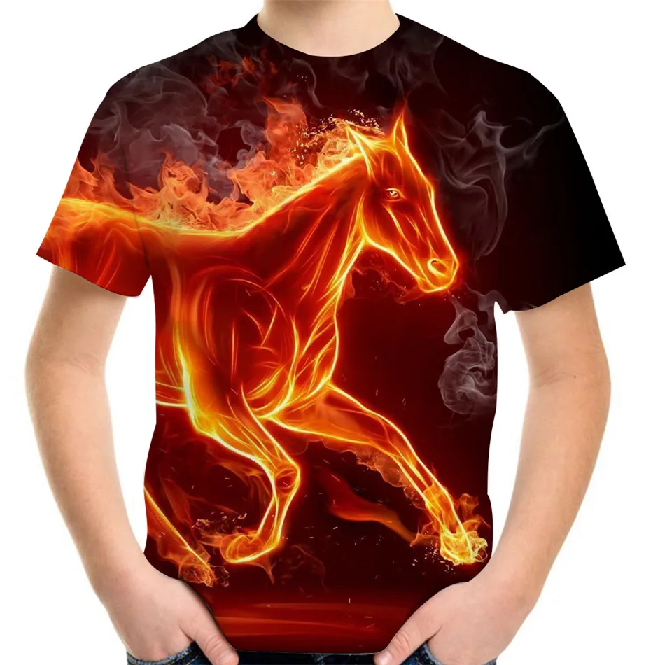 Футболка детская летняя с 3D рисунком, модная рубашка с рисунком животных, пожара, лошади, стоячего стоя, для мальчиков и девочек, день рождения, классная одежда для подростков