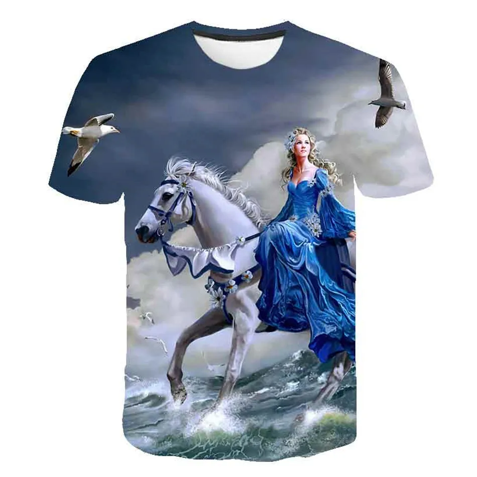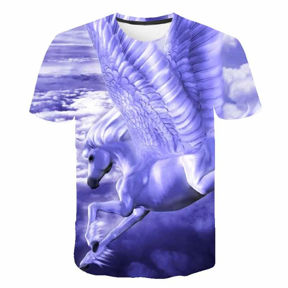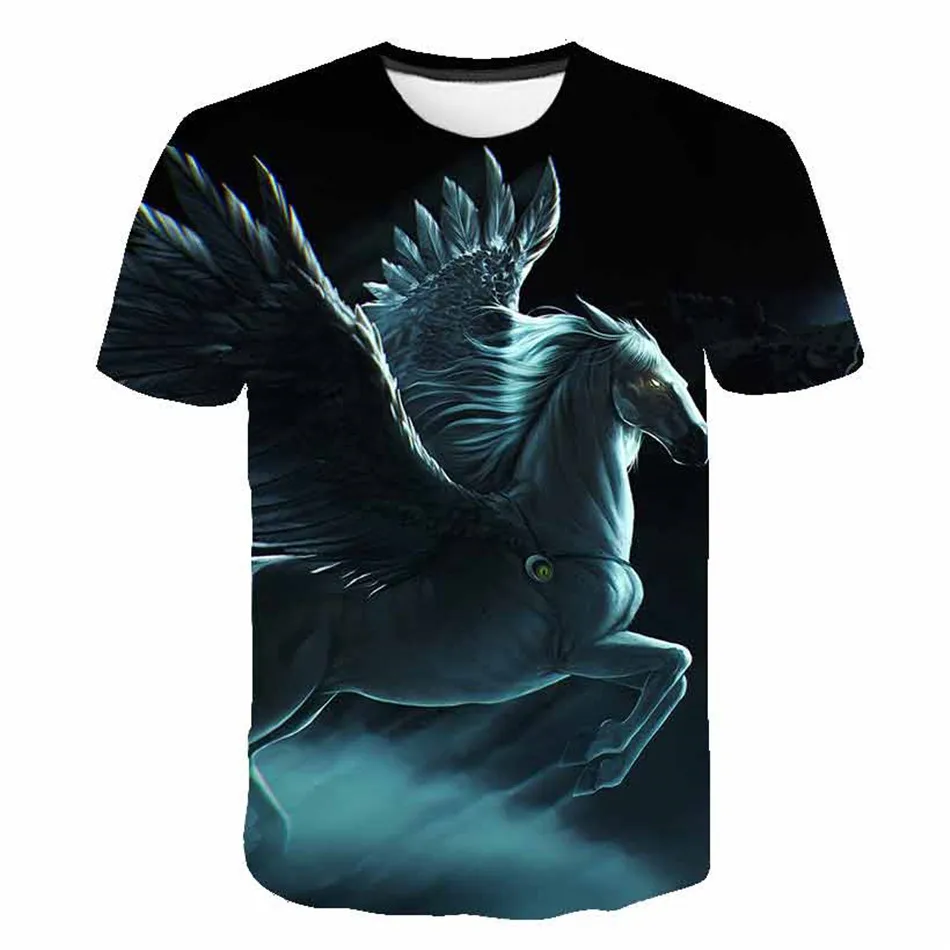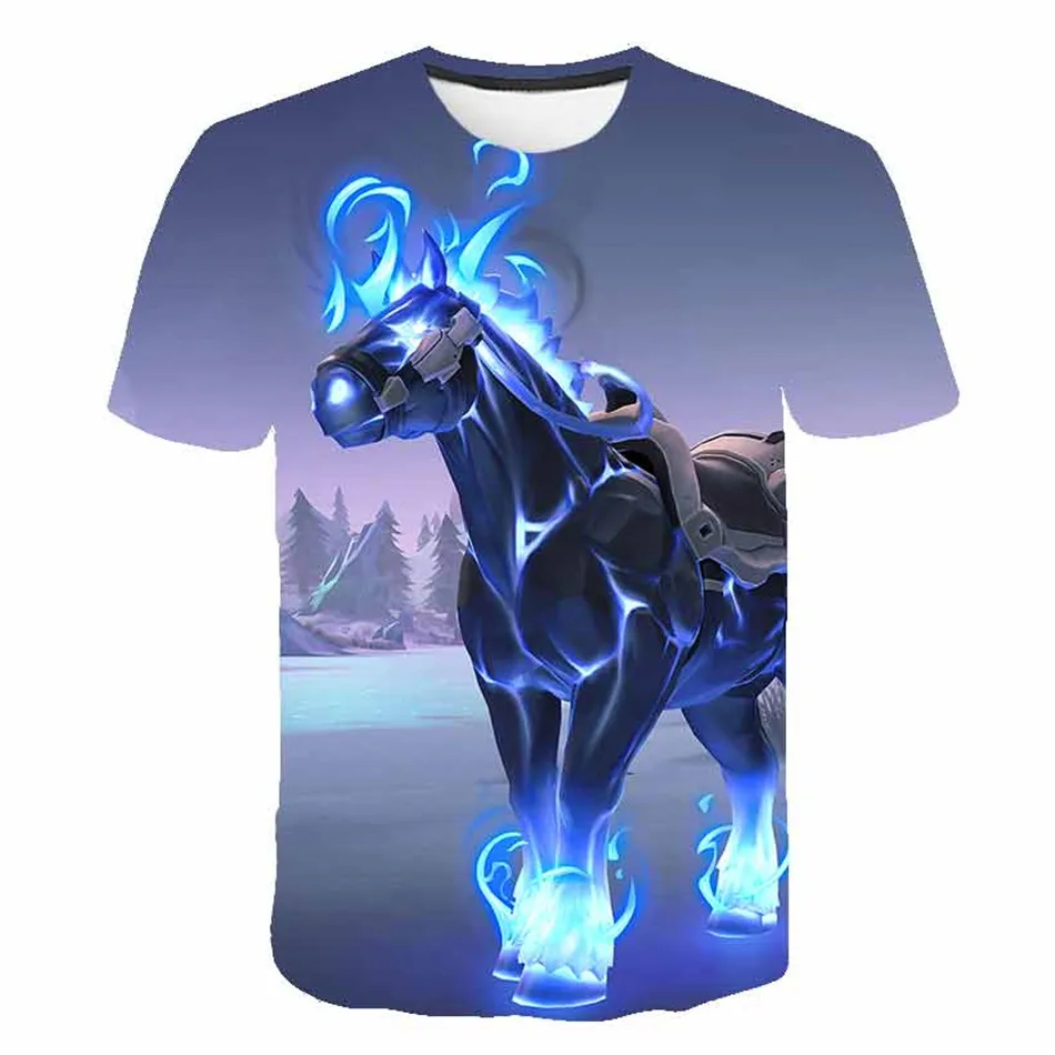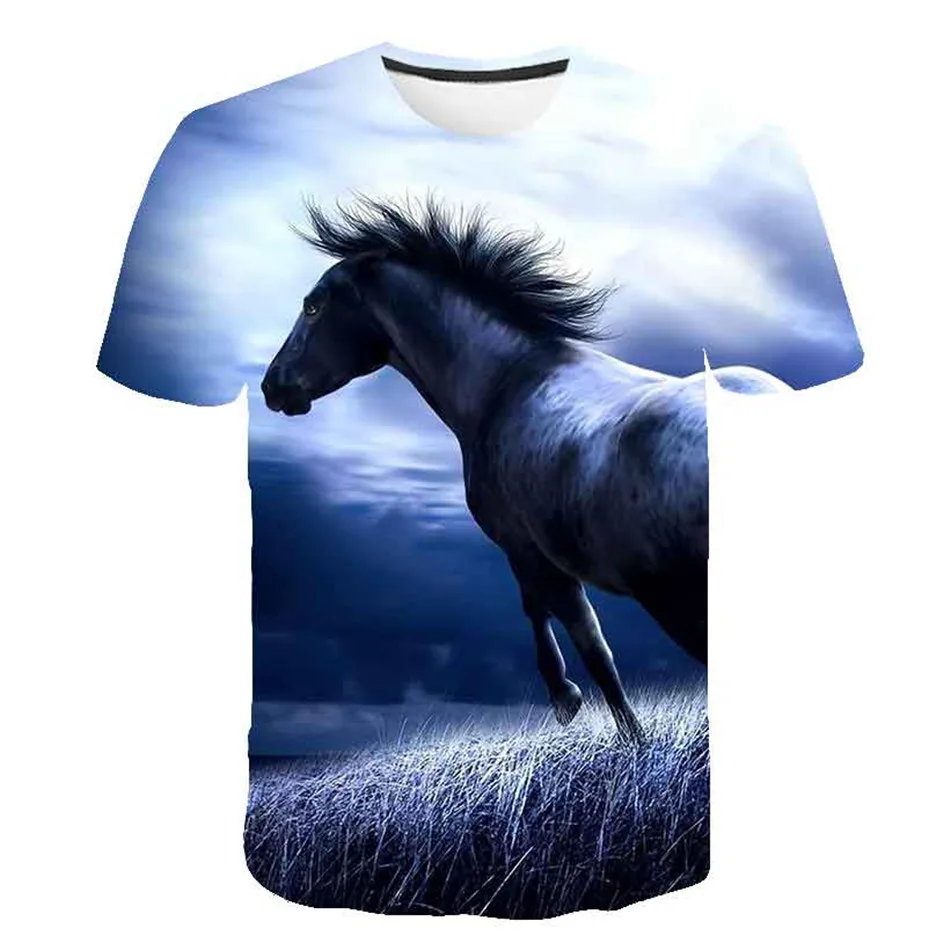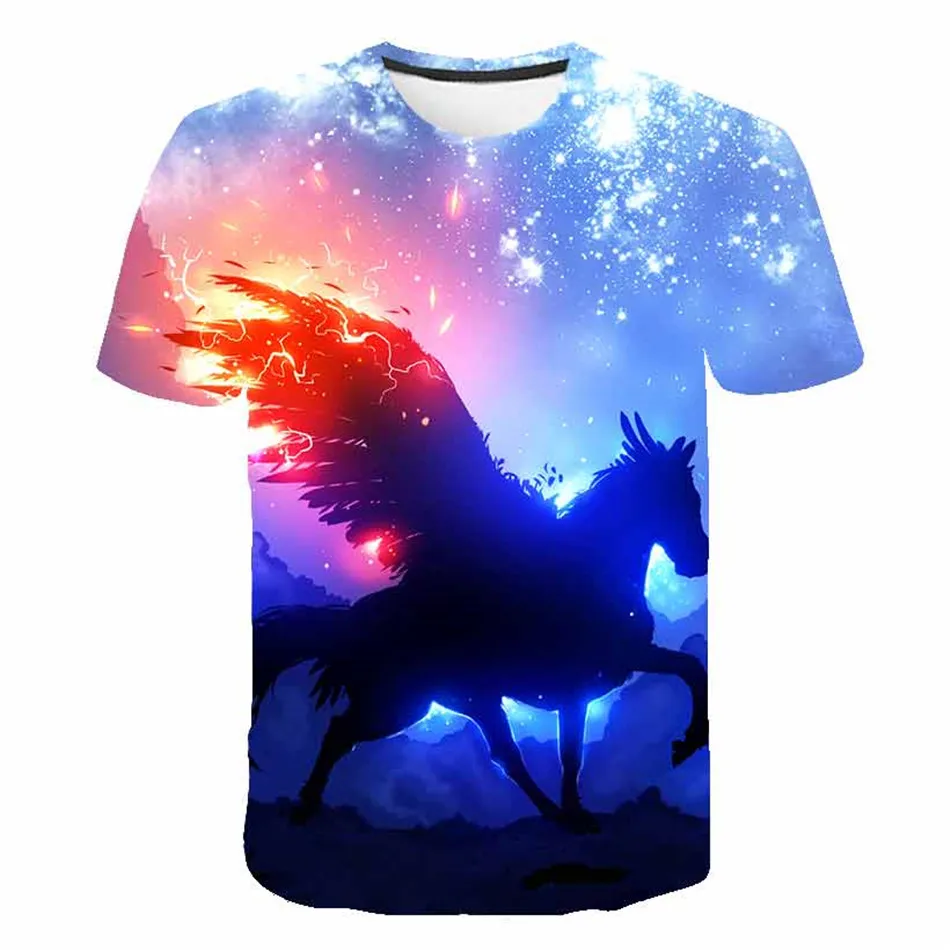 Футболка детская летняя с 3D рисунком, модная рубашка с рисунком животных, пожара, лошади, стоячего стоя, для мальчиков и девочек, день рождения, классная одежда для подростков