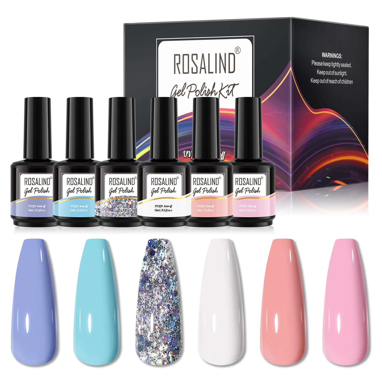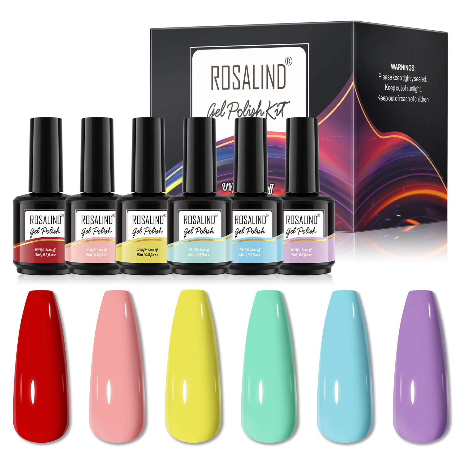 ROSALIND 6 шт набор гель-лаков 15 мл маникюрный набор для дизайна ногтей лак для ногтей Vernis Полупостоянный набор гель-лаков для ногтей основа и верх