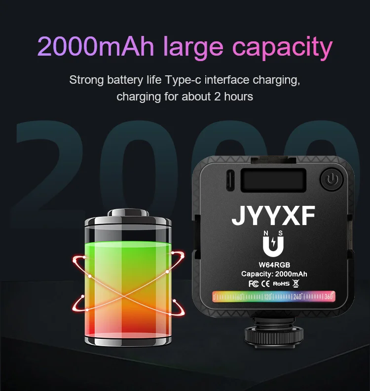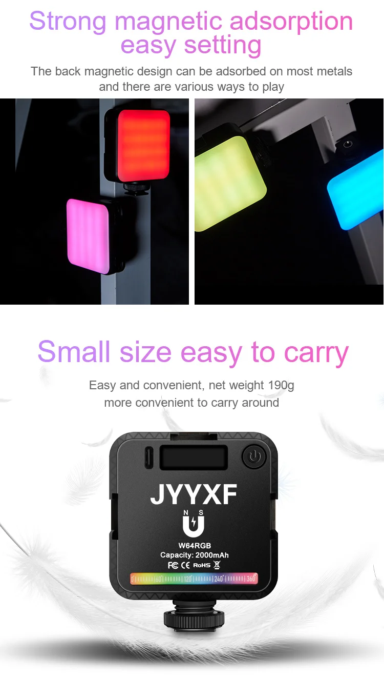 JYYXF W64 RGB светодиодный светильник для видеосъемки, 2000 мАч, по...