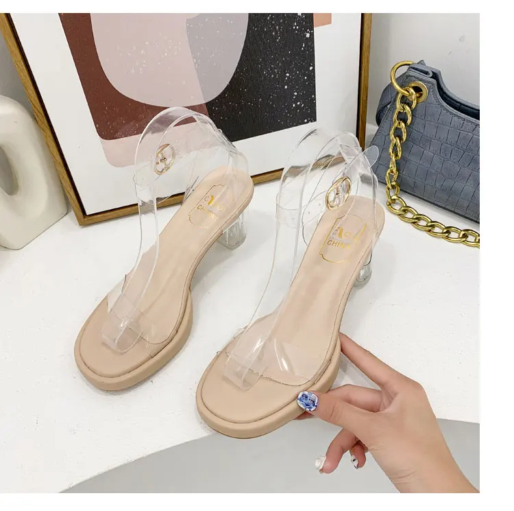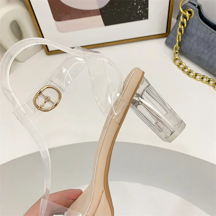 Сандалии женские прозрачные на высоком каблуке, босоножки с квадратным носком, Желейная прозрачная Свадебная обувь для невесты, лето