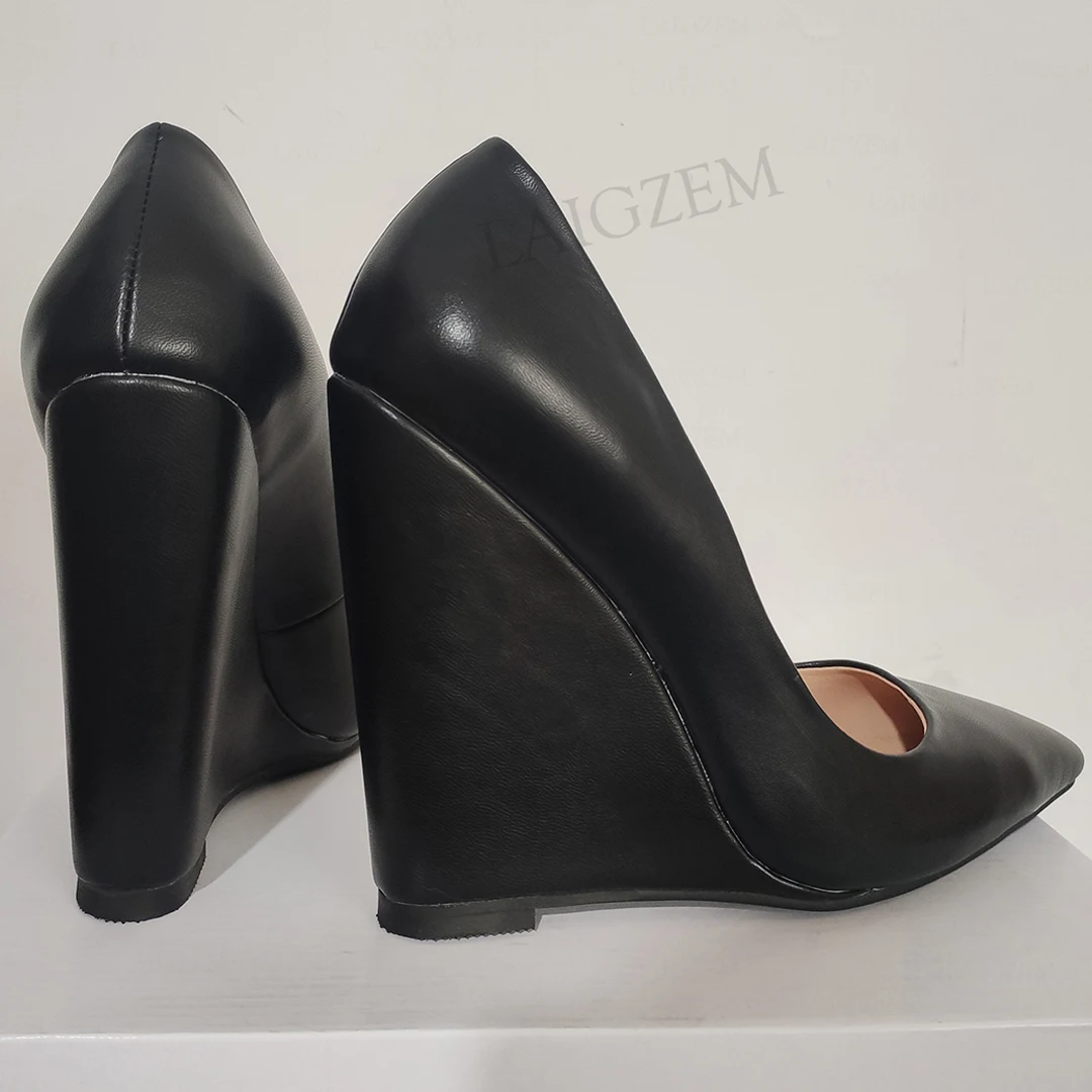 Женские туфли-лодочки на танкетке BERZIMER, черные туфли из искусственной кожи на высоком каблуке, вечерние модельные босоножки на 4 сезона, большие размеры 39 42 44 47